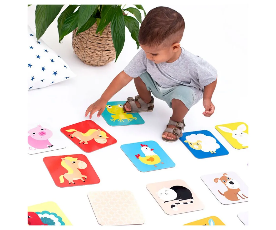 Además del juego de memoria, los peques pueden jugar a reconocer los nombres de los animalitos, sus sonidos y otras características de los animales.