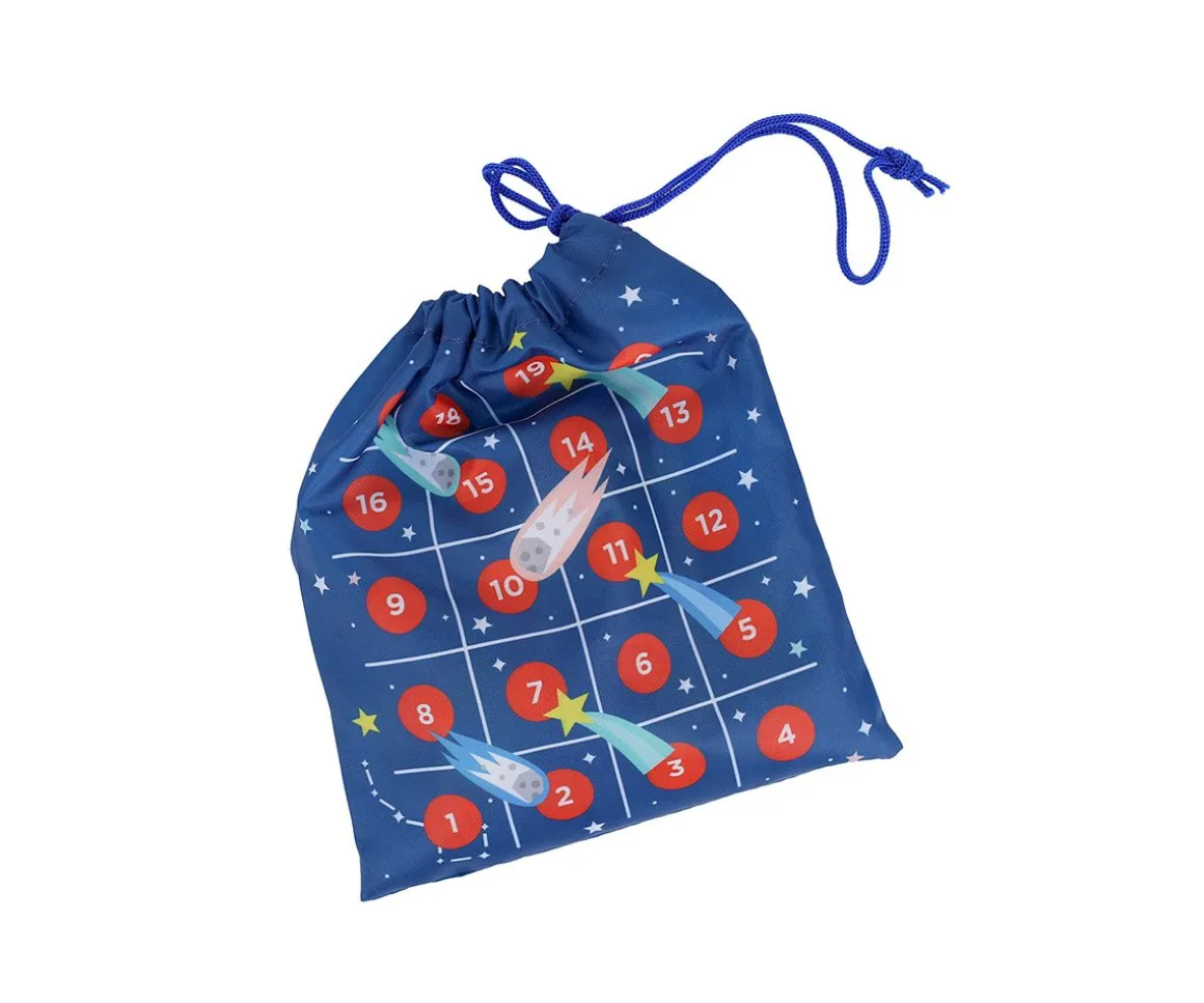 Mueve planetas y cohetes por las cuadrículas impresas en la práctica bolsa de viaje que es el tablero de juego. El set incluye 10 fichas de madera, un dado de madera e instrucciones, todo en un formato compacto, ¡para llevar contigo a donde quieras!
