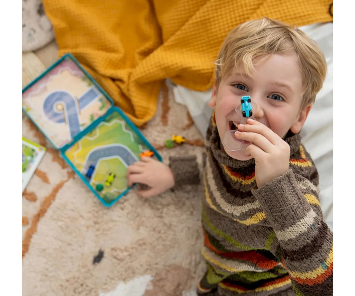 Incluye un estuche de viaje que sirve como tablero, tarjetas de circuitos de doble cara, 8 piezas de rompecabezas magnéticas (6 con autos de carrera, 2 con árboles) y un folleto con desafíos y soluciones. ¡Atrévete a disfrutar de la velocidad y la estrategia en cada partida!