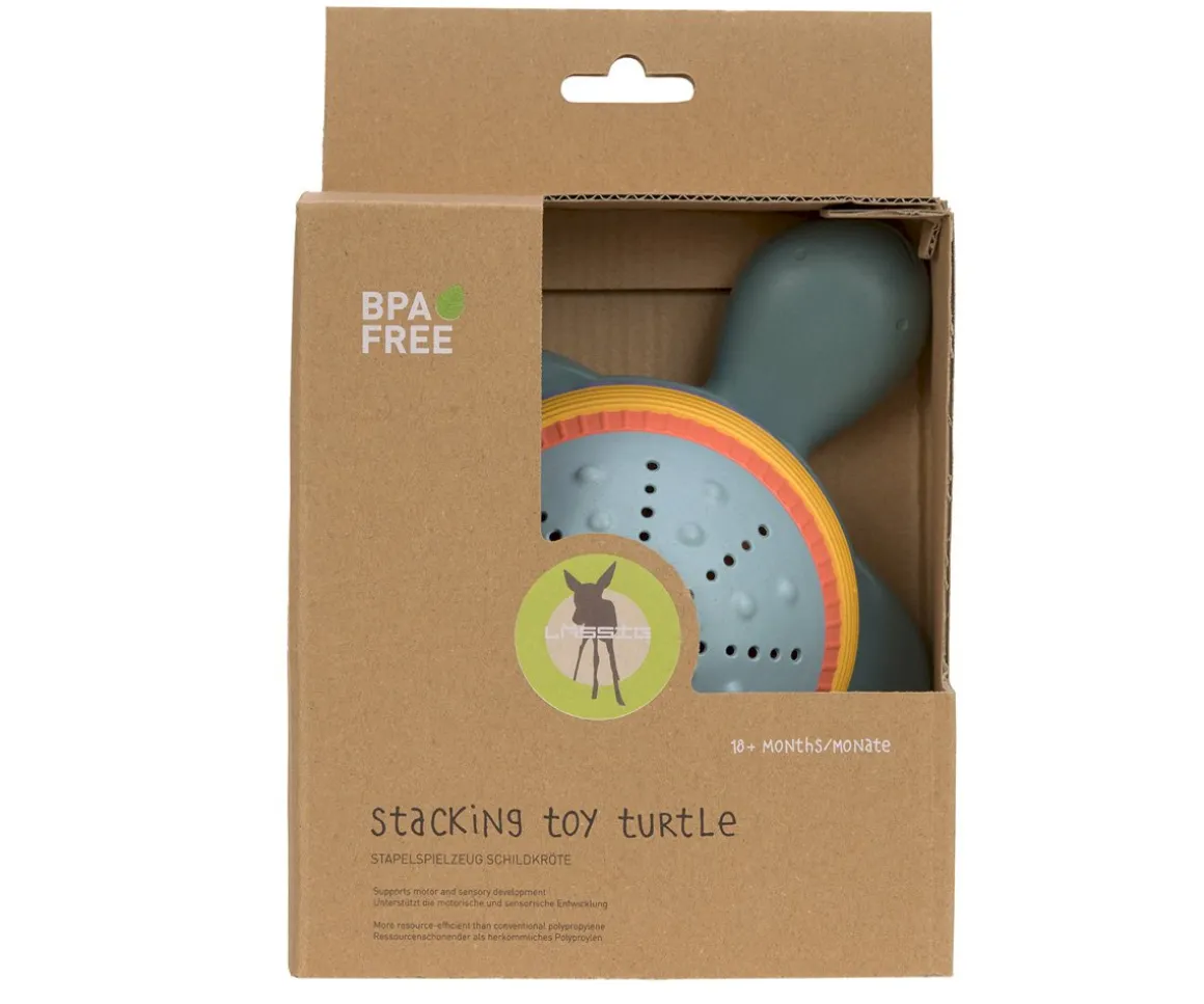 El juguete apilable con forma de tortuguita de Lassig es genial para jugar en la playa, el parque infantil e incluso durante la hora del baño.