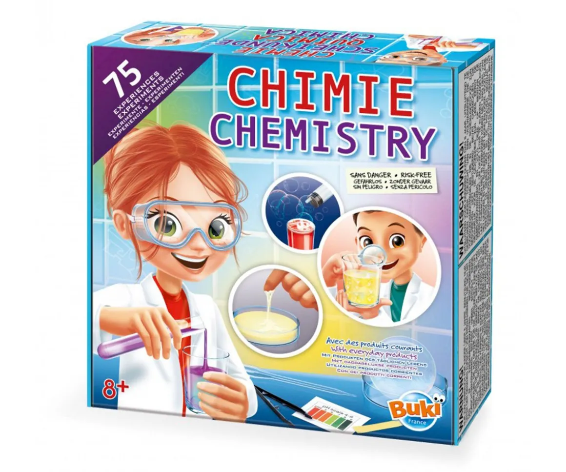 ¡Descubre un emocionante set de química con 75 experimentos seguros y libres de químicos! Con este kit, podrás realizar divertidos experimentos científicos utilizando productos domésticos comunes como sal, agua, vinagre y harina.