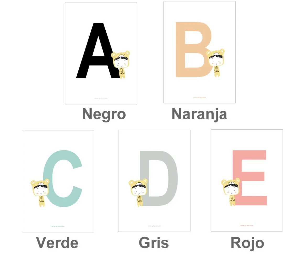 Selecciona la letra del nombre del niño o la niña, el color de la letra y el tamaño de la lámina.