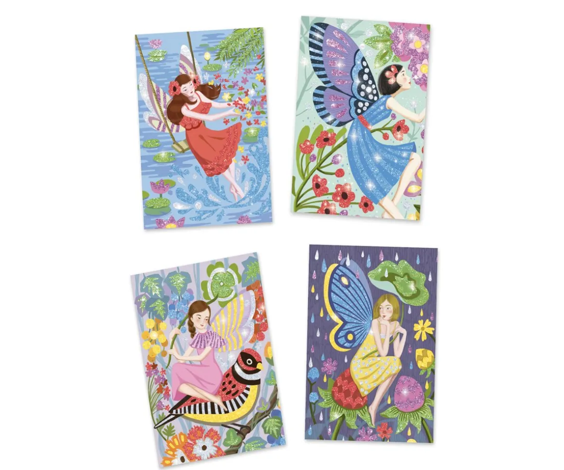 - Incluye: 4 láminas de hadas, 1 pincel, 1 herramienta, 6 botes de purpurina