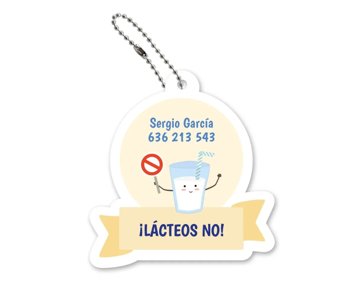 Pertenece a nuestra colección de etiquetas y llaveritos para destacar la intolerancia a algún alimento. Si quieres ver la colección entera clica .