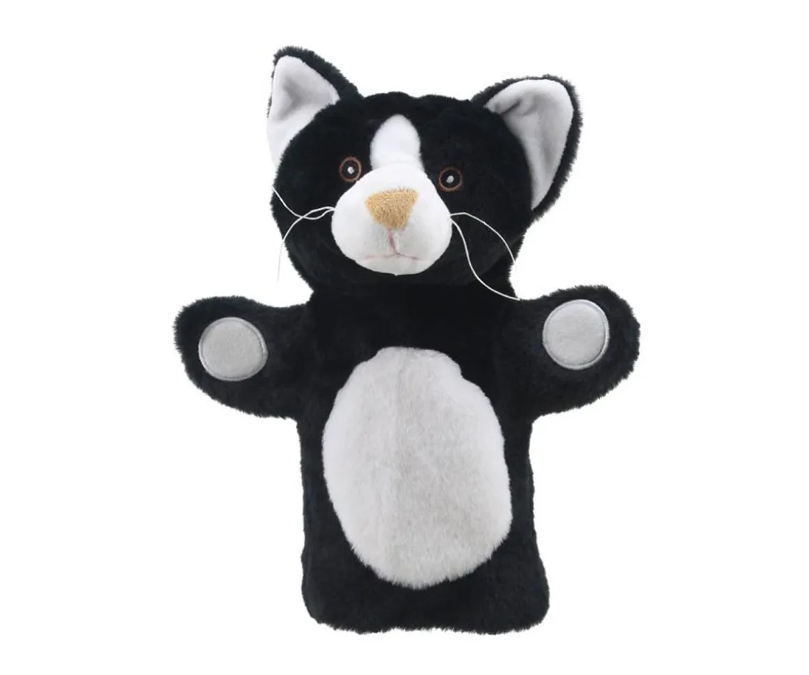 Adorable marioneta de gato blanco y negro, bellamente elaborada con atención al detalle, es el complemento perfecto para cualquier colección de marionetas y el mejor amigo para las horas de juego.