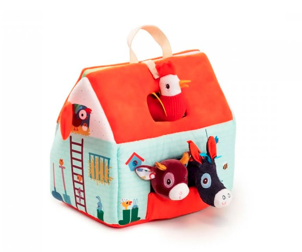 En la finca del granjero Fons hay un jolgorio muy animado. El burro Ignace, el cerdo Simon, la vaca Rosalie, la oveja Yvon, la gallina Paulette y el pato Gaspard son los coloridos habitantes de esta granja. El granjero Fons merodea de aquí para allá con su tractor y se ocupa de que todo esté en orden. Cada uno de los animales que vive en la granja tiene su sitio propio. Puedes llevarte la granja y sus habitantes fácilmente gracias a su cierre y la práctica asa