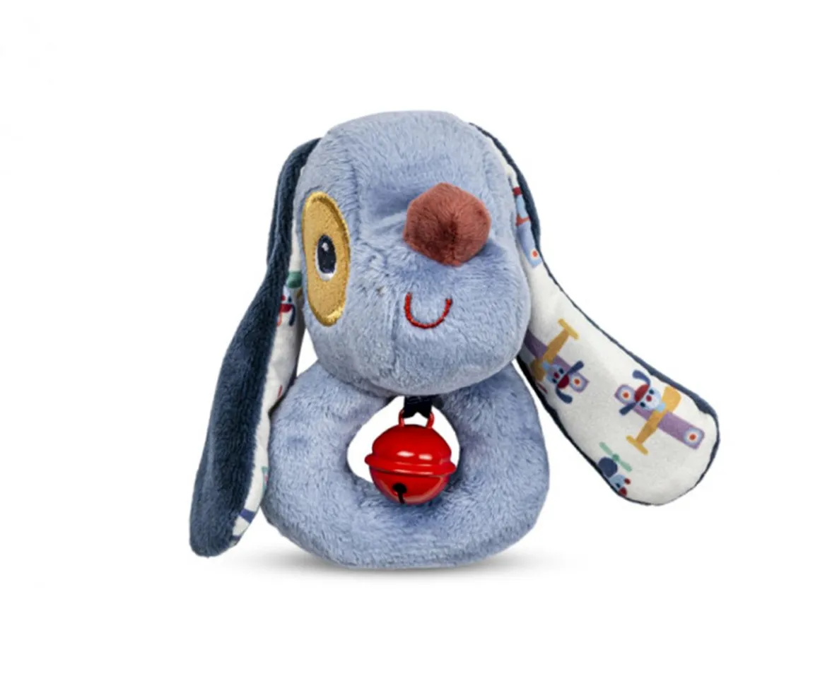 El perro Jules y su cascabel, tintinea alegremente cuando las manos de tu pequeño lo agitan. Un sonajero alegre que estimula los sentidos, el oído y la motricidad fina.