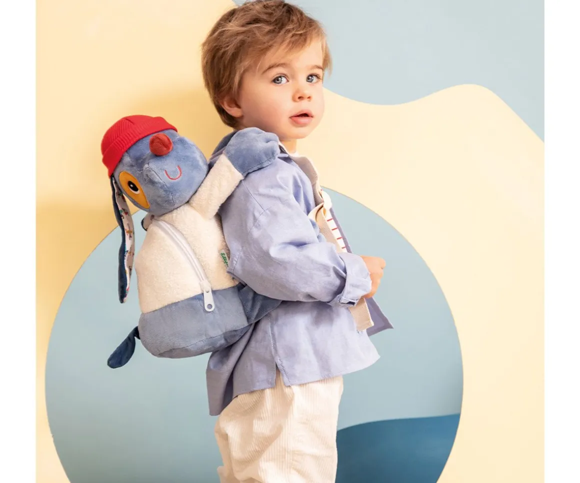Perfecta para ir a la escuela infantil, esta mochila es blandita y suave. El perrito Jules de Lilliputiens, abrazará la espalda del peque, siendo de lo más original para llevar la muda y la botella de agua.