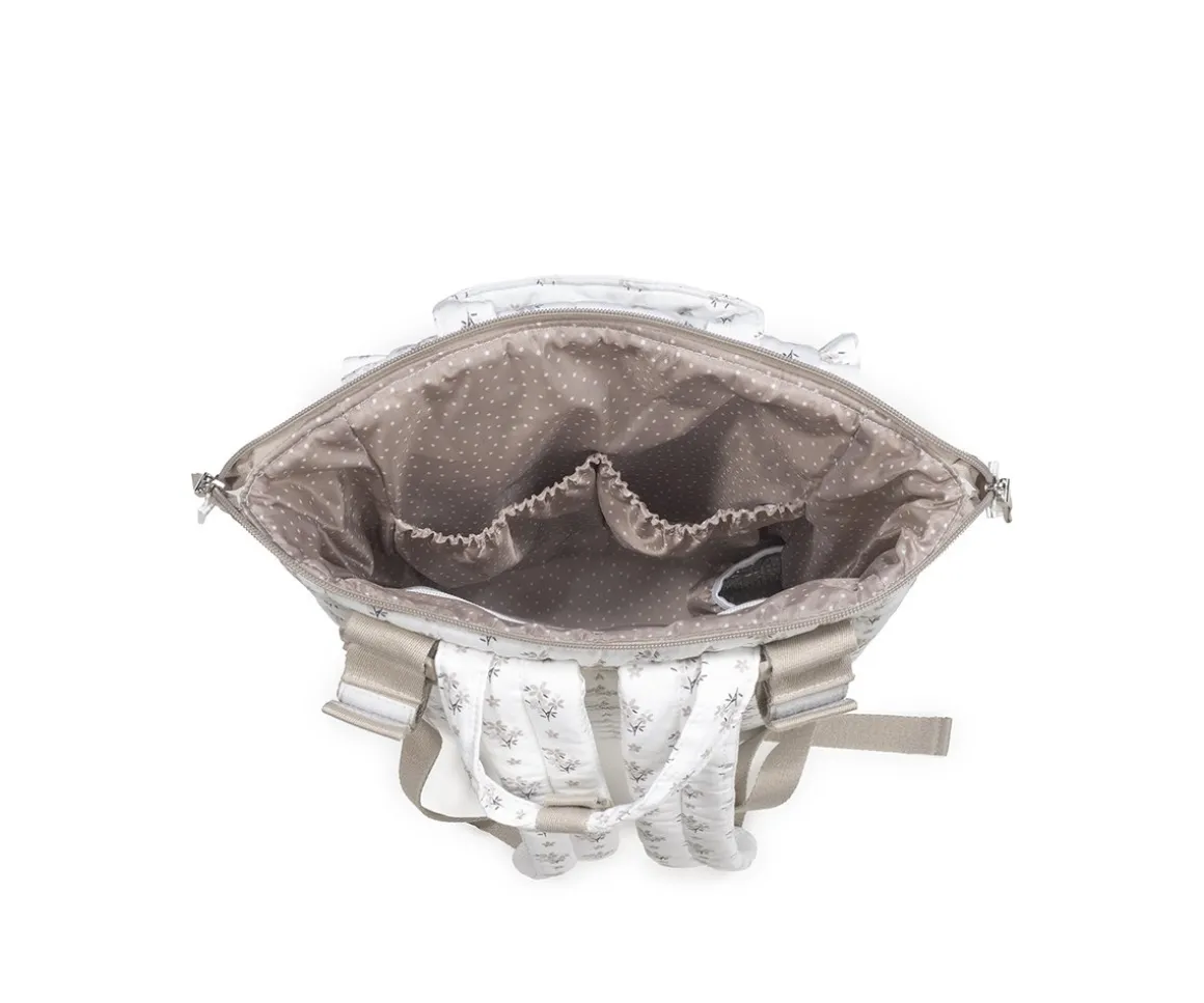 La mochila incluye 2 asas cortas ajustables que facilitan la colocación en cualquier modelo de silla de paseo, asas de mano y correas acolchadas para colgar en la espalda y llevarla contigo cómodamente.