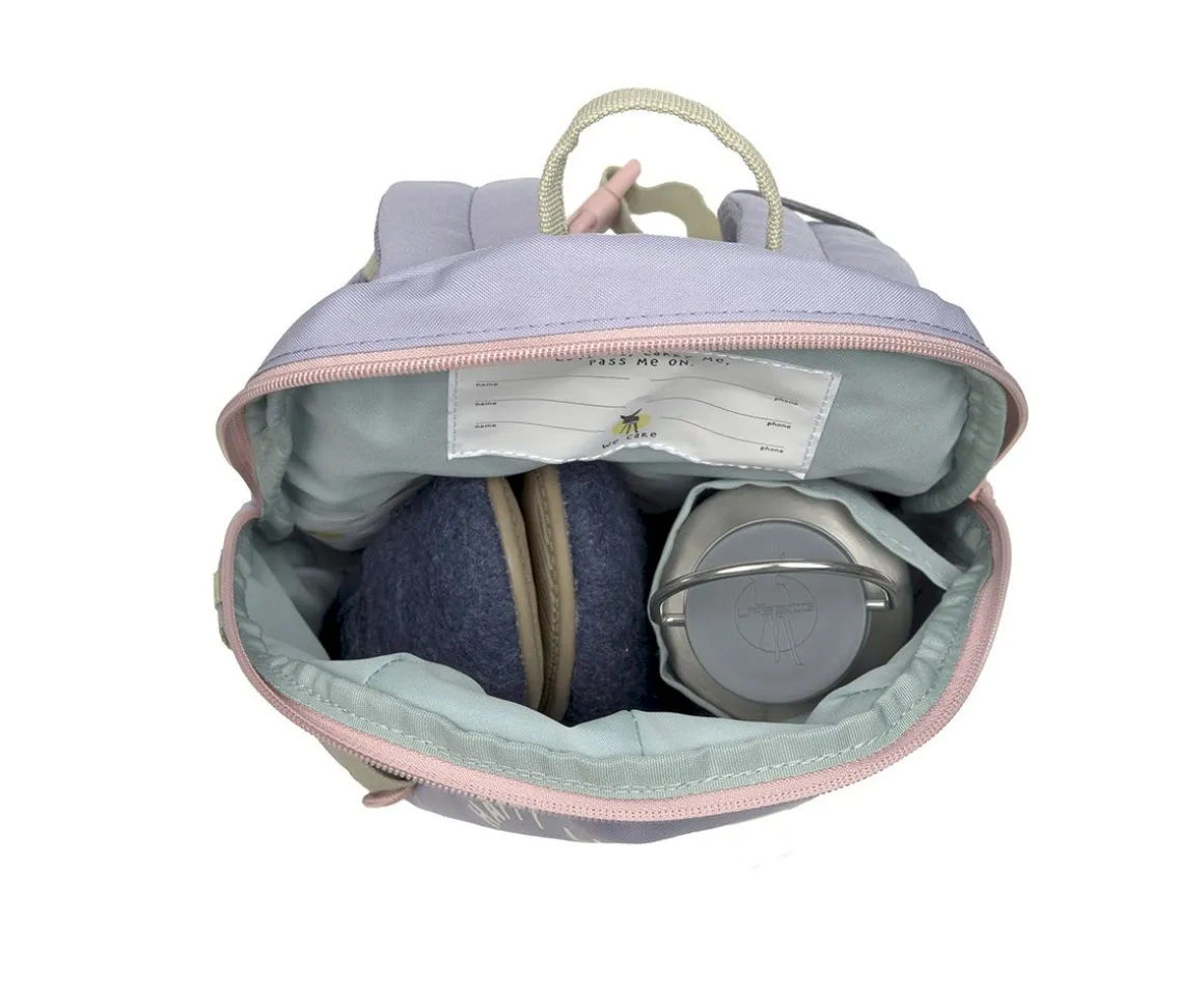 Una mochila pensada tanto para ir al cole como para ir de excursión. En su bolsillo principal, encontrarás una etiqueta para poner la información del peque y un bolsillo abierto para colocar la botella de agua. Tiene un mosquetón en la parte frontal de la mochila y su tejido es repelente al agua.