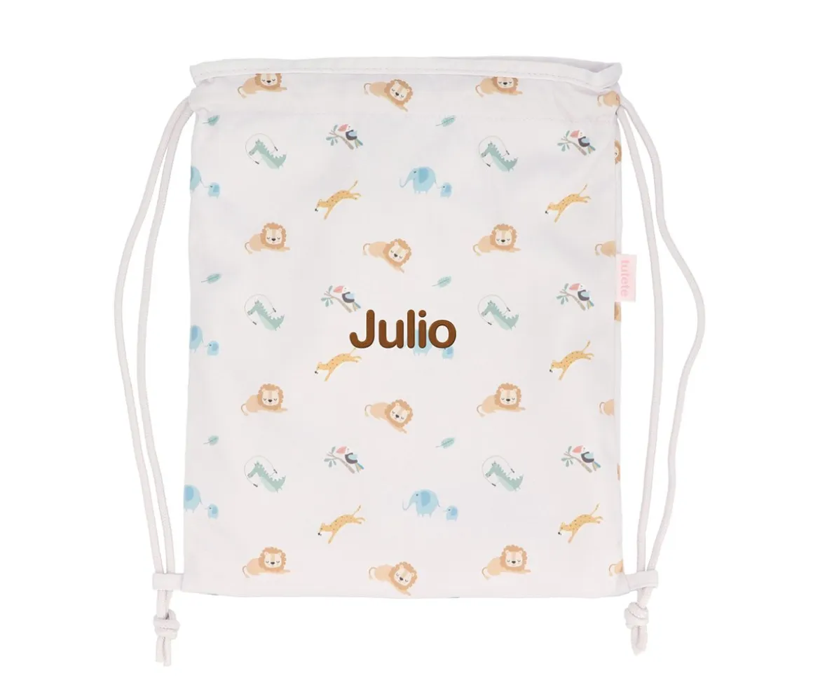 La mochila saco de tela de Tutete es ligera y muy cómoda para llevar el almuerzo o muda de cambio a la escuela infantil.