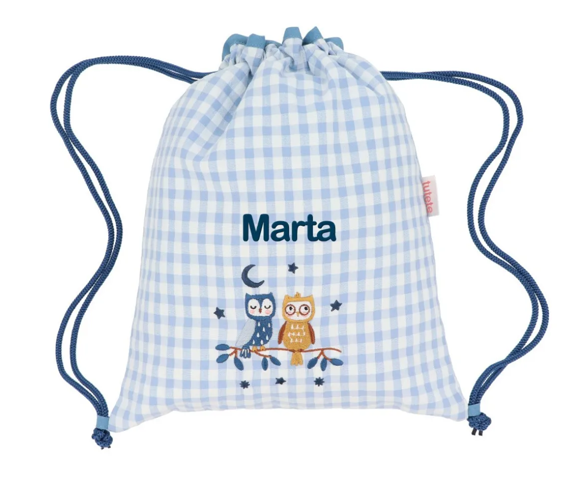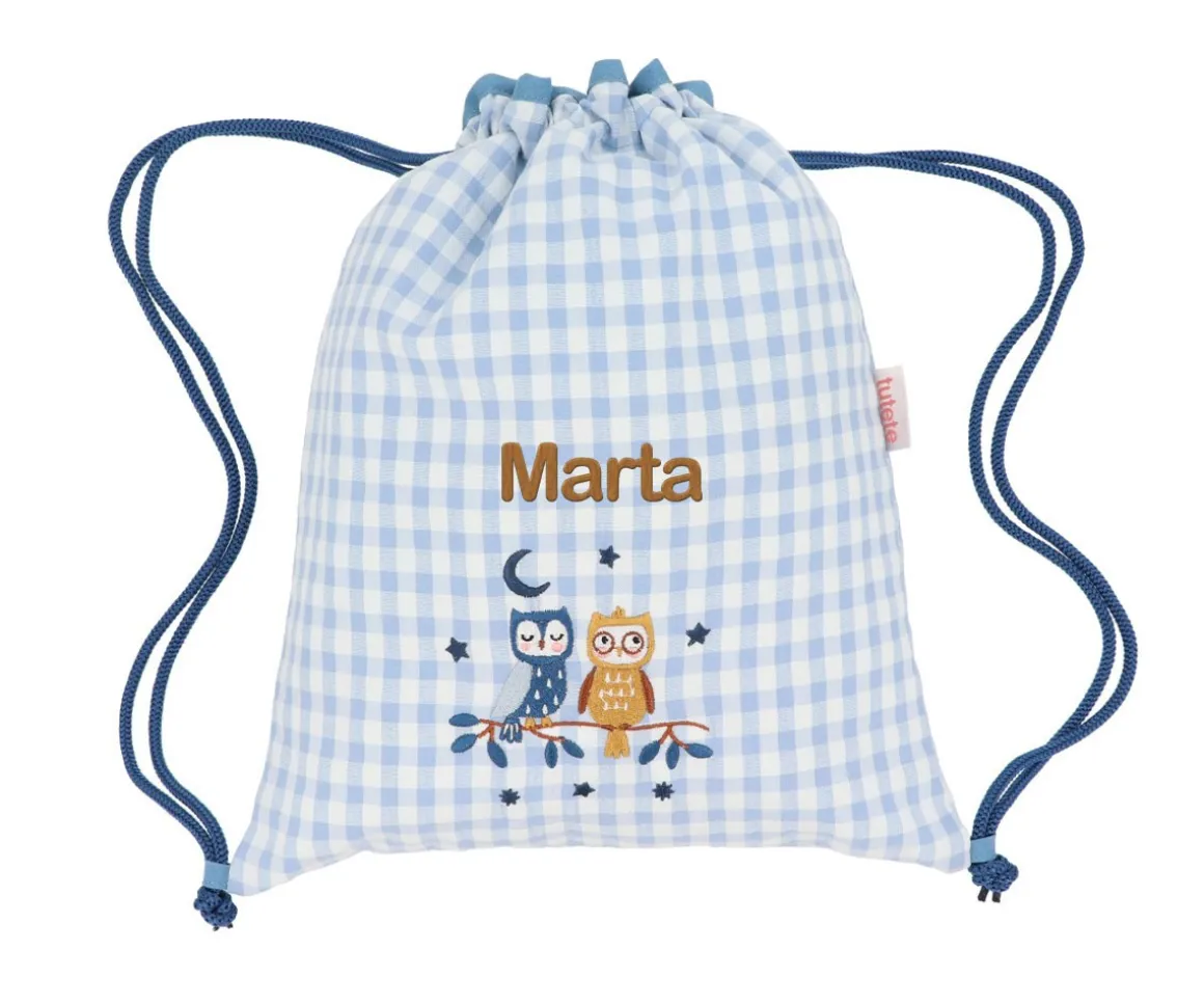 Las mochilas saco de tela cuentan con un dibujo bordado en la parte delantera de las colecciones de Tutete Vuelta al Cole 2025, y son ideales para llevar el almuerzo, la merienda o una muda al cole así como a actividades extraescolares.