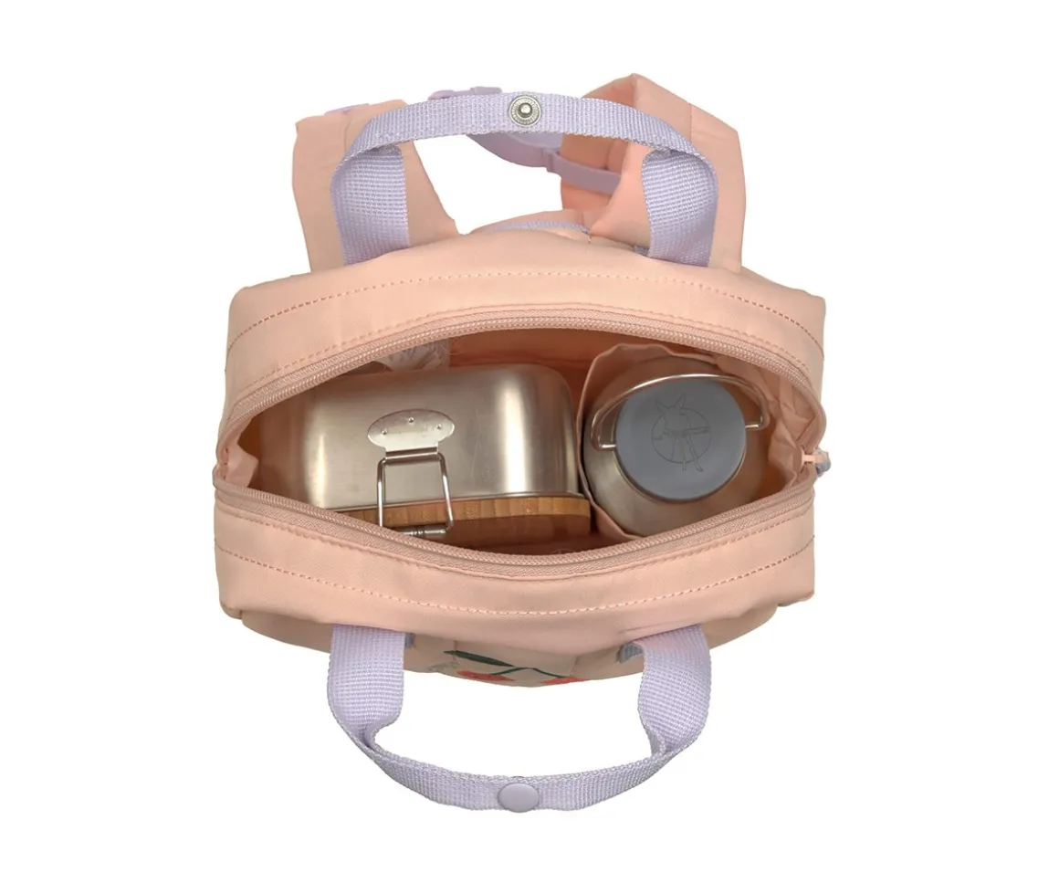 La mochila mini Square de la colección Little Gang Cherry Peach de LÄSSIG es perfecta para la escuela, excursiones o viajes.
