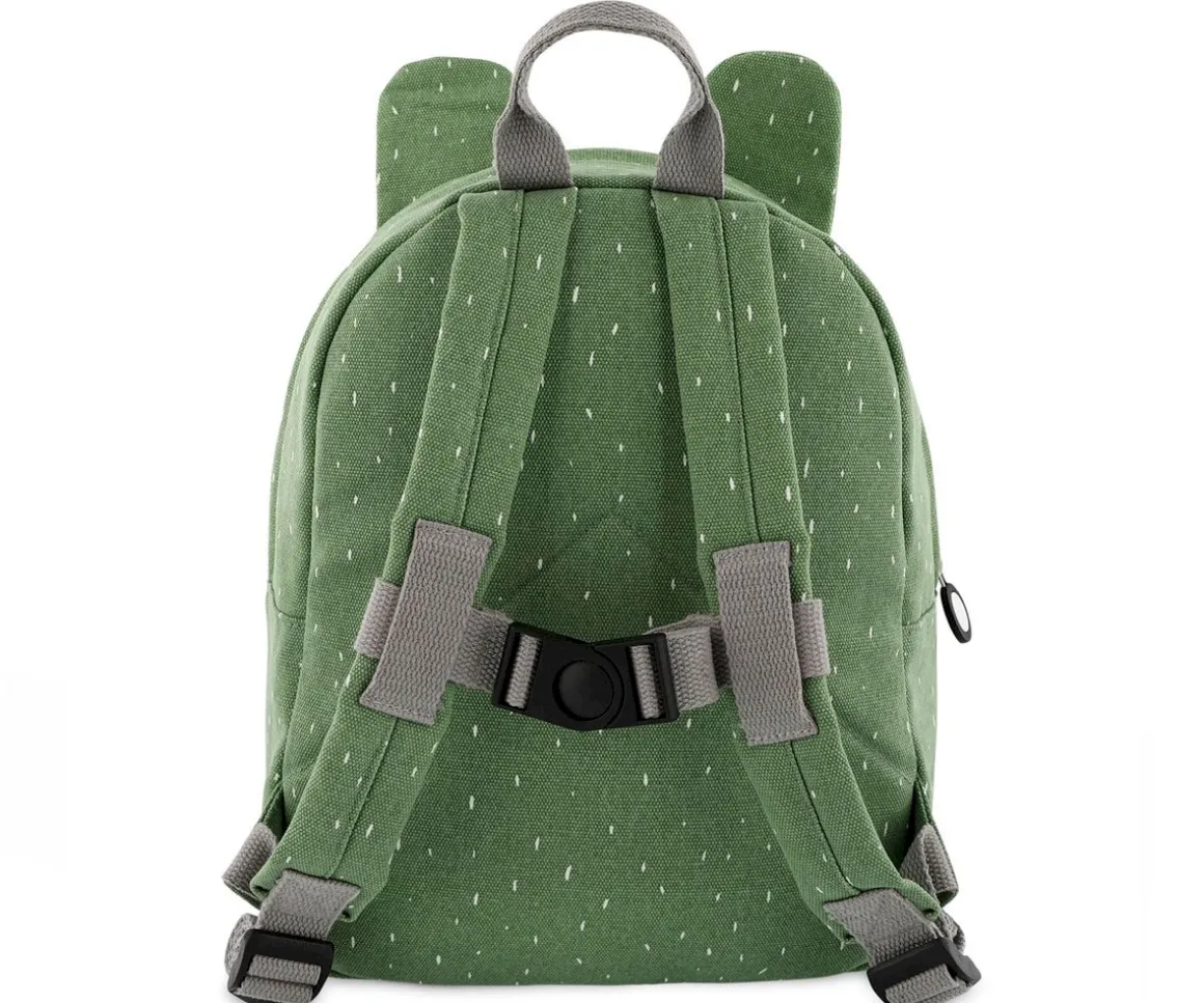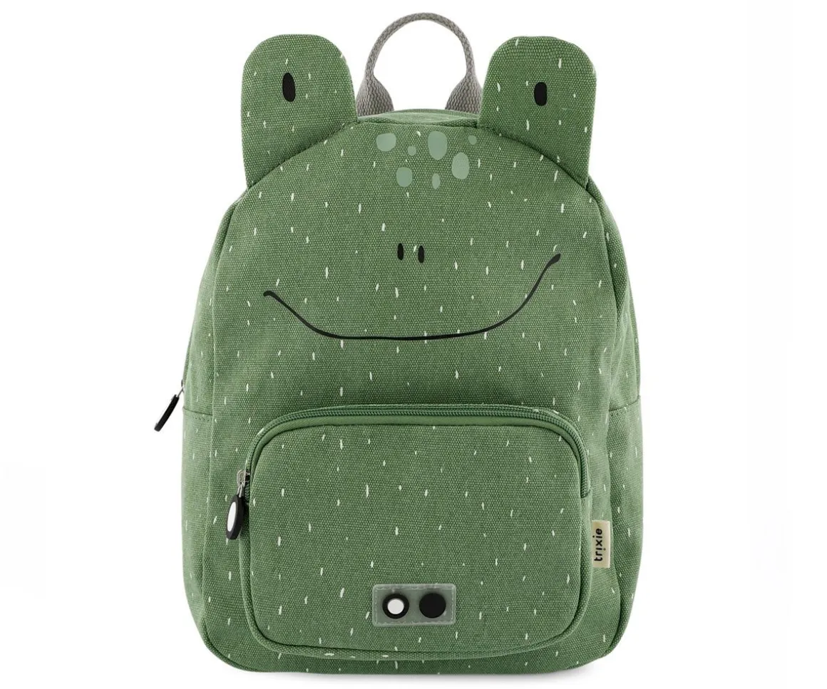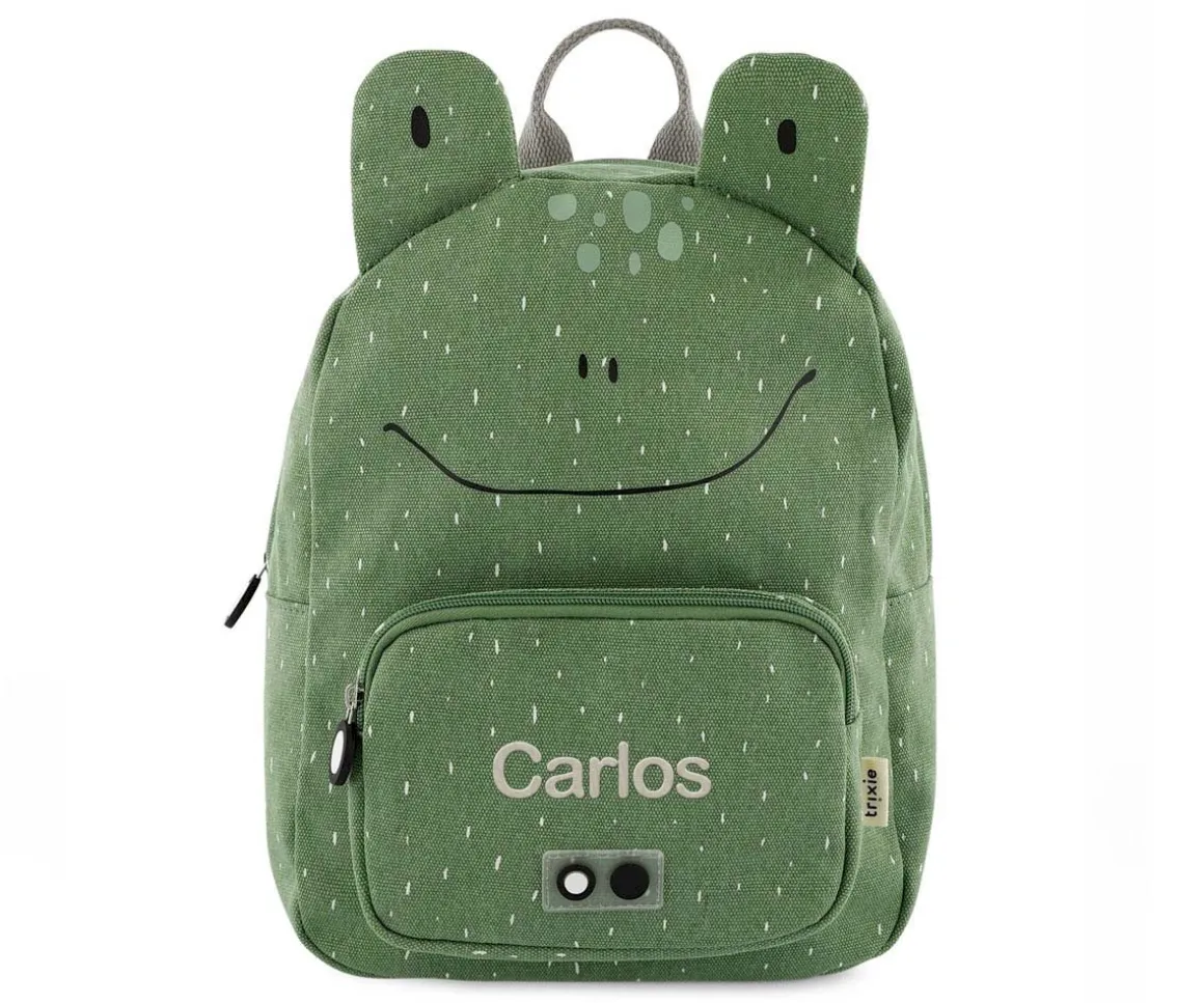 Mochila con divertido diseño para llevar al colegio o la escuela infantil con llavero personalizado a juego con este divertida rana.