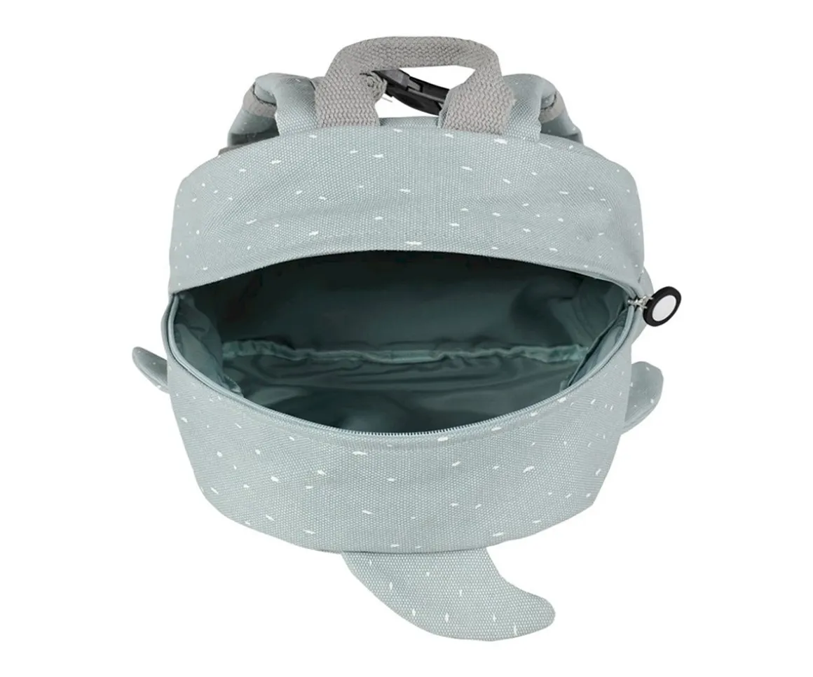 Mochila con divertido diseño para llevar al colegio o la escuela infantil con llavero personalizado a juego con este divertido tiburón.