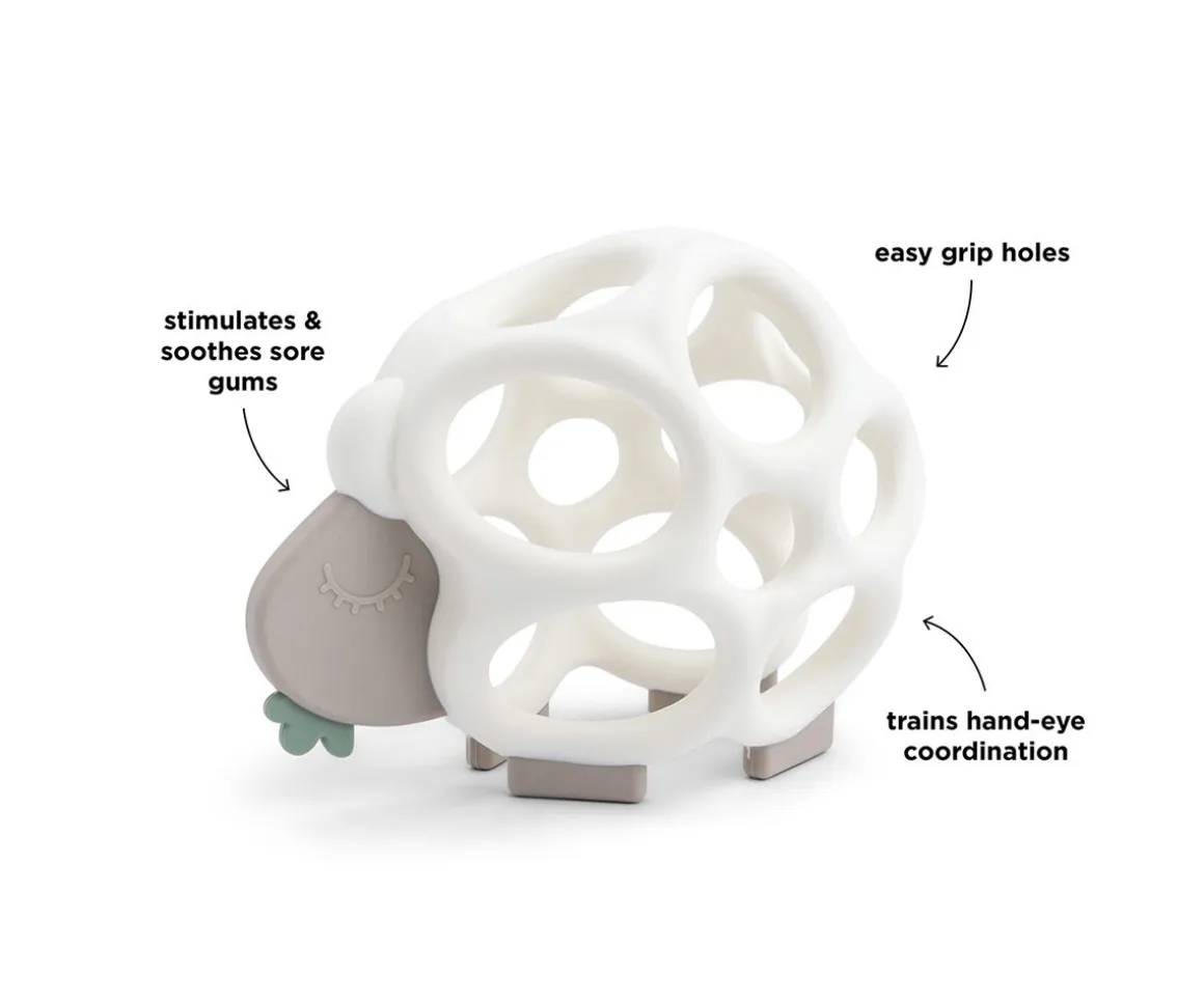 Esta redondita oveja llamado Sheepy pertenece a la colección de Done by Deer, mientras el bebé manipula a la oveja fácilmente gracias a sus orificios; también podrá aliviar sus encías actuando cómo mordedor.