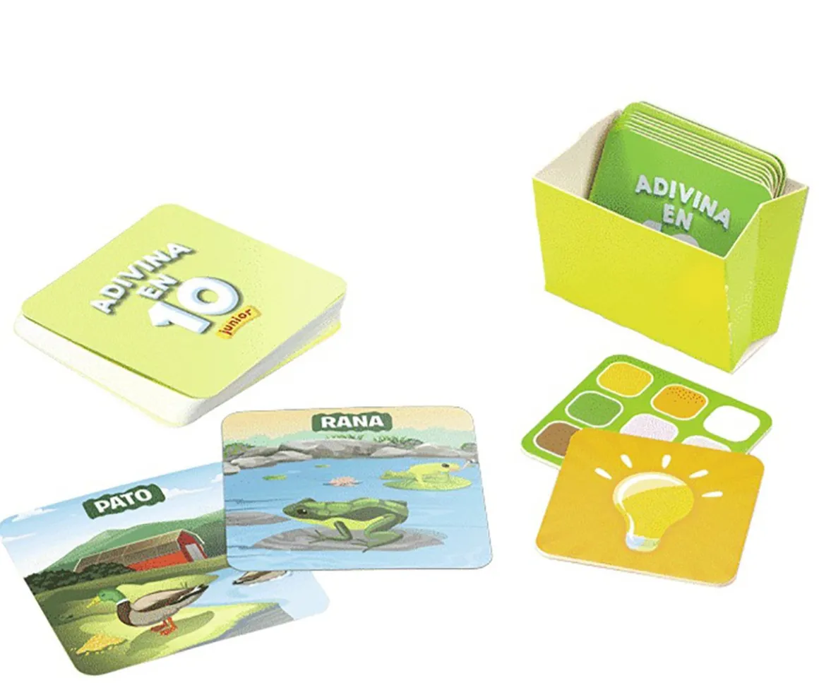 Prepárate para el juego de preguntas más emocionante. Utiliza las fichas de ayuda, haz preguntas y obtén pistas sobre el animal de la carta de juegos.