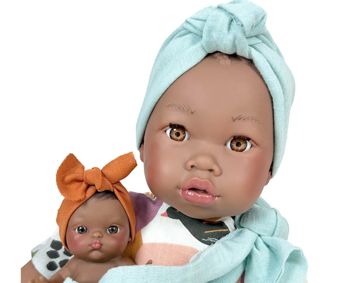 - Incluye: muñeca Alika, bebé, turbante, zapatos, vestido y porteo