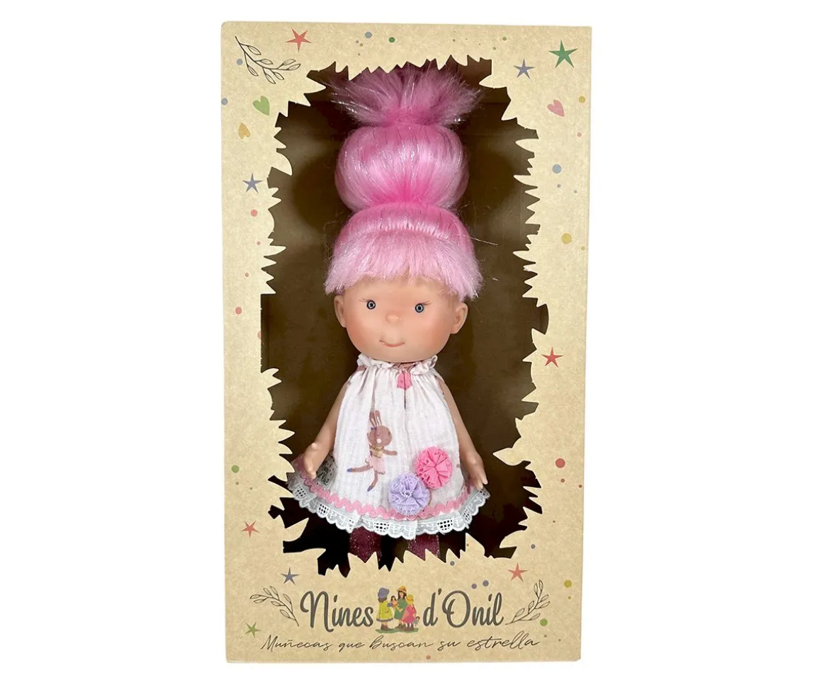 Nines d’Onil presenta a la muñeca Pippa, con pelo color de algodón de azúcar y mechas plateadas brillantes, vestida con un original vestido, unas calcetas y unos zapatos.