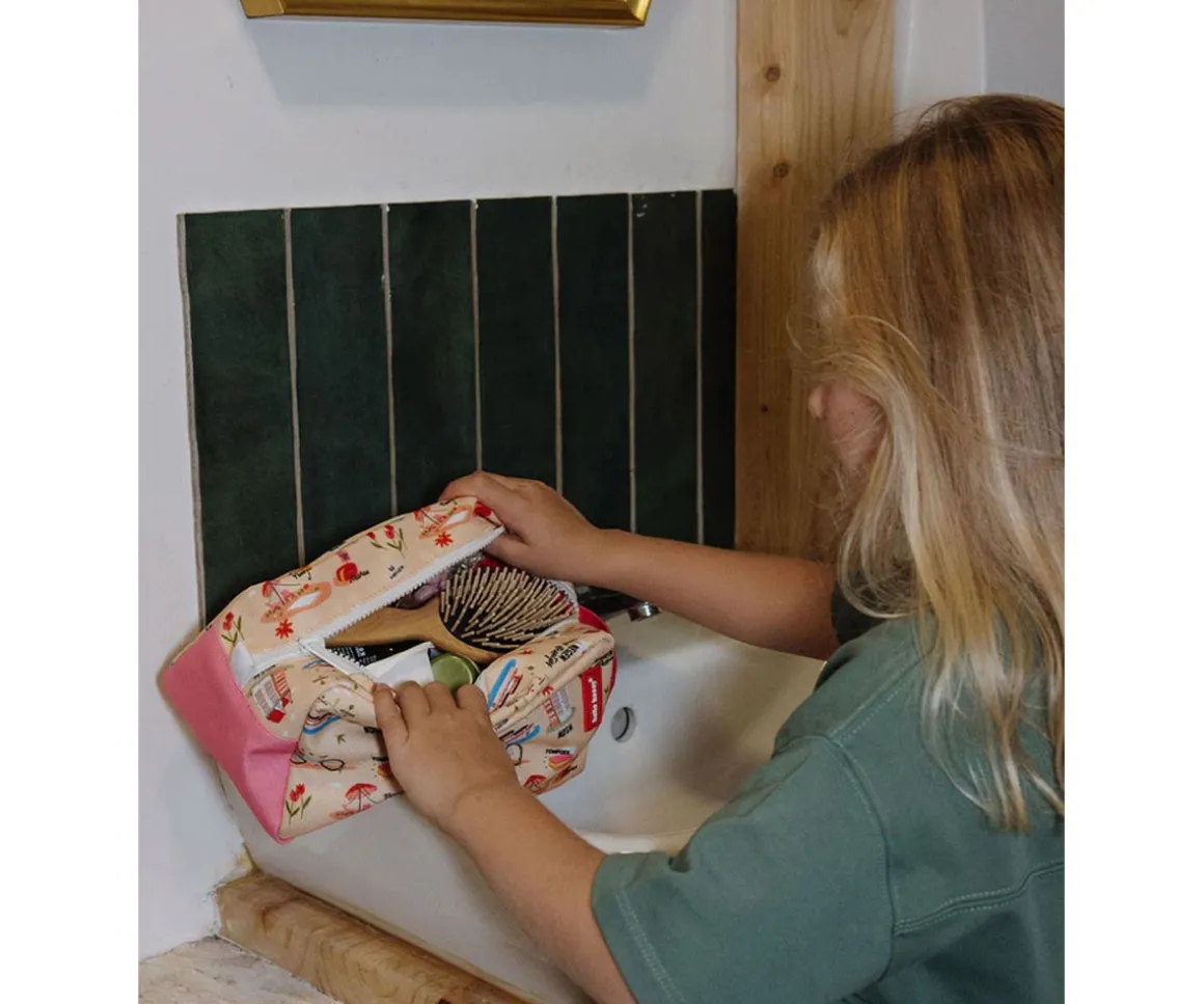 El neceser de aseo infantil Amsterdam de Hello Hossy tiene una capacidad ideal para llevar todo lo necesario para un fin de semana, de viaje o para ir de acampadas. Su tejido es impermeable, incluye un bolsillo abierto interior y un asa de transporte.