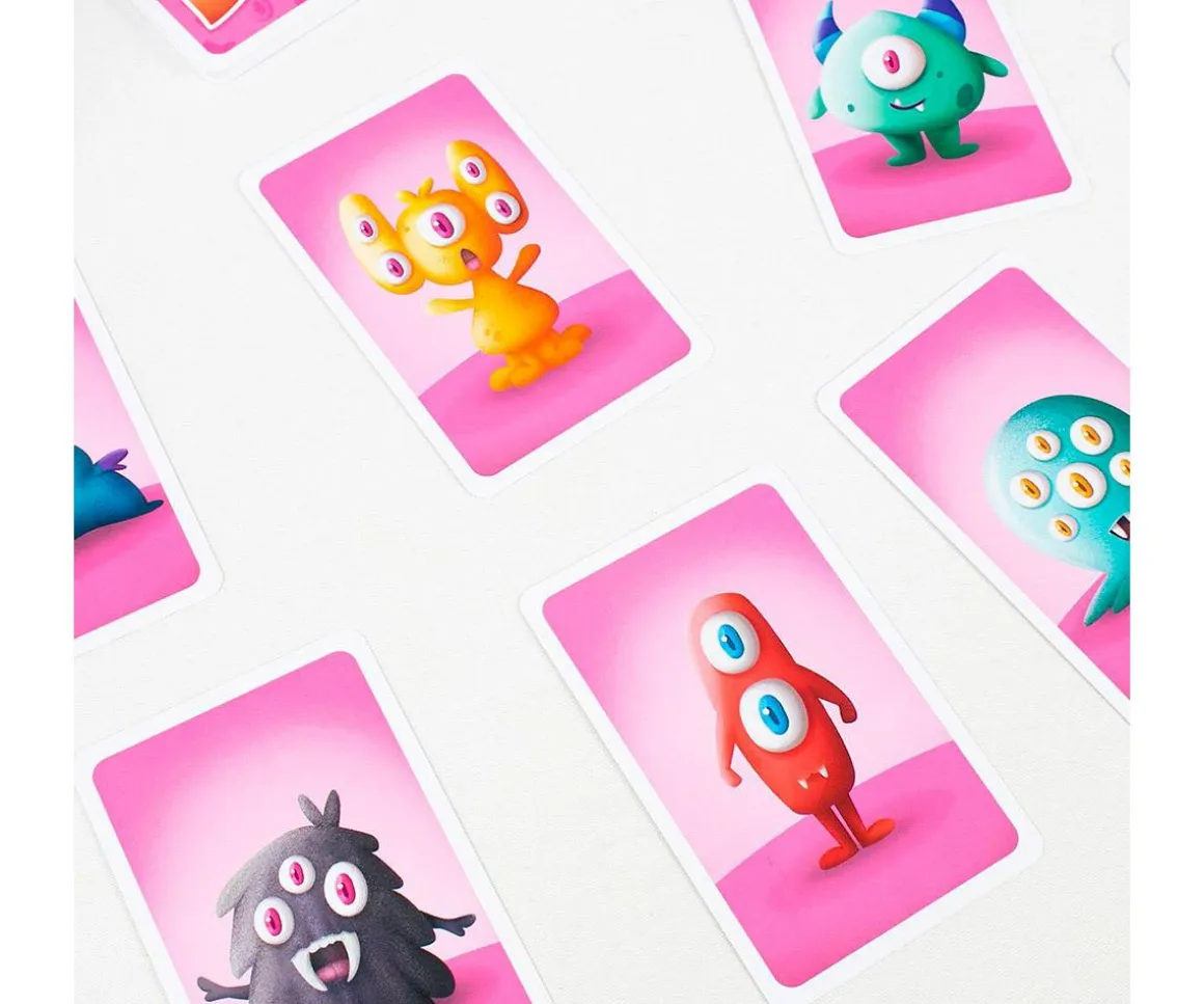 Divertido juego de cartas compuesto por 20 cartas con ilustraciones de monstruos en una cara y en el otro lado indicando el número de ojos, manos y patas que tienen. Con 3 niveles de dificultad, el objetivo será conseguir el mayor número de estrellas de las cartas de reto, siendo el más rápido en adivinar correctamente el número correcto final.