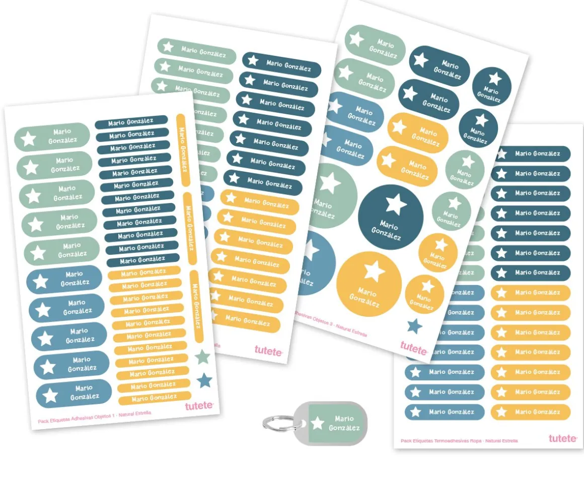 - El nombre que elijas irá impreso sobre una pegatina en el llavero y en todas las etiquetas del pack