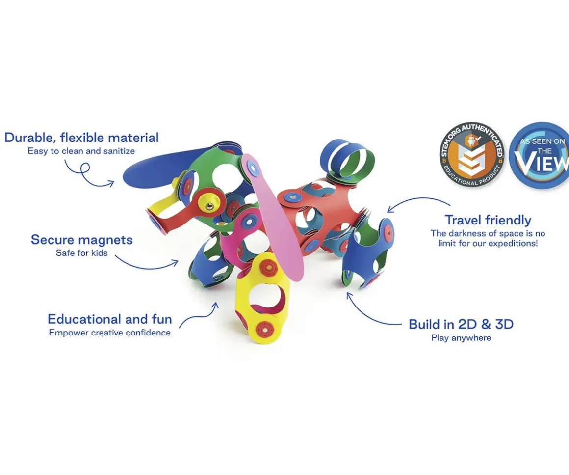 Las piezas de Clixo se doblan y se conectan con imanes fuertes y fiables para crear figuras únicas. - Portátil y compacto:
