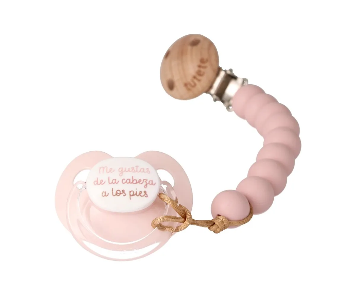 Pack regalo para papá compuesto por un chupetero de silicona y un chupete presentado en una bolsita de algodón orgánico.