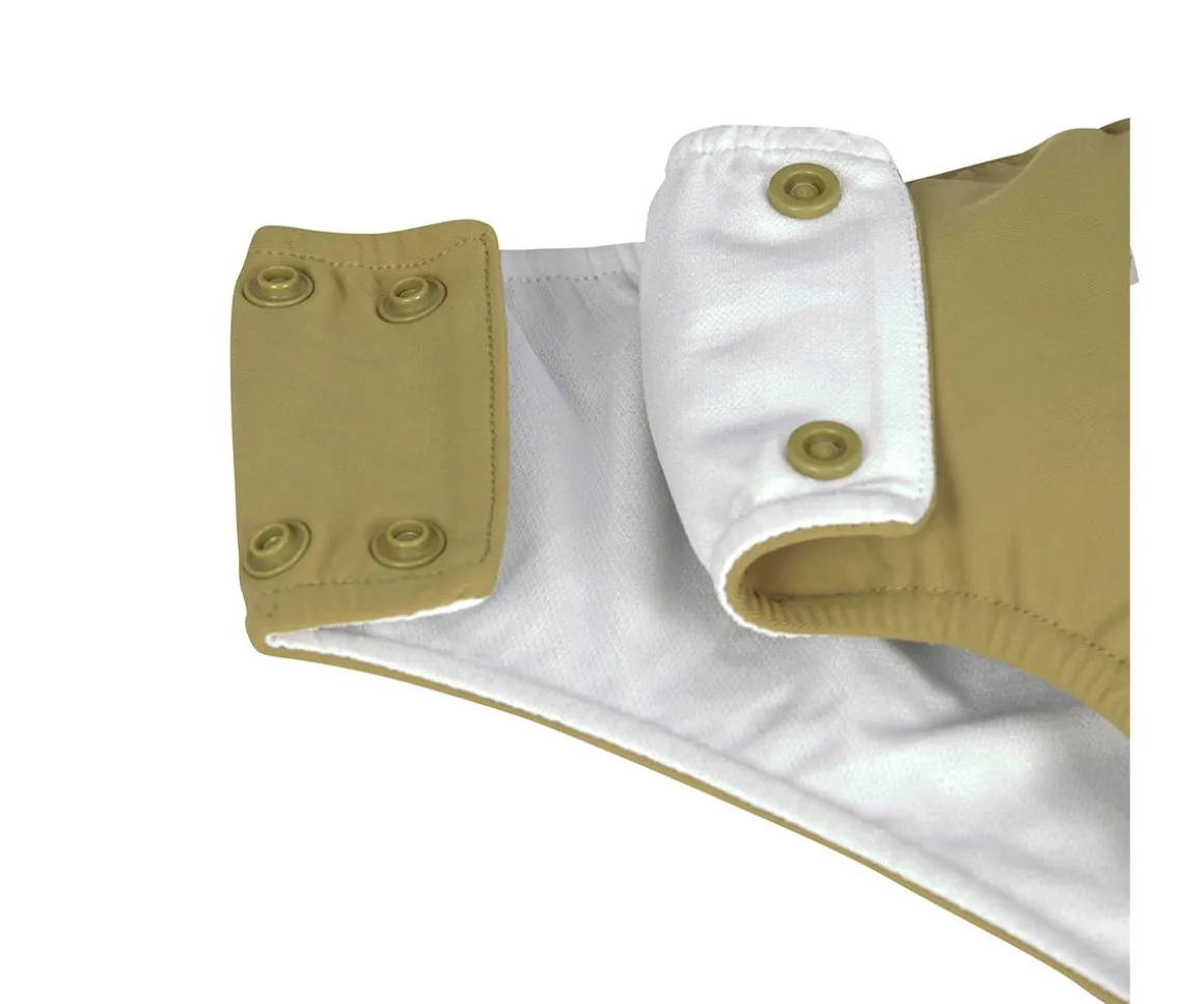 Este pañal bañador impermeable, se caracterizan por un novedoso sistema de forro y relleno absorbente que atrapa la humedad y la transporta hacia afuera para mantener la piel del bebé los más seca posible. Es la alternativa ecológica a los pañales desechables.
