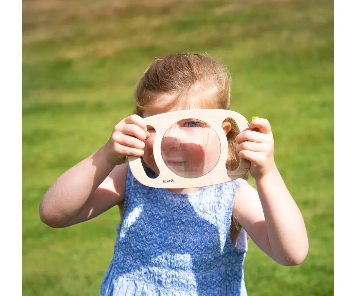 Tickit presenta este marco de madera con asas con un inserto de kaleidoscopio, muy fácil de sostener y a través del cual a los peques les encantará mirar el mundo que les rodea.