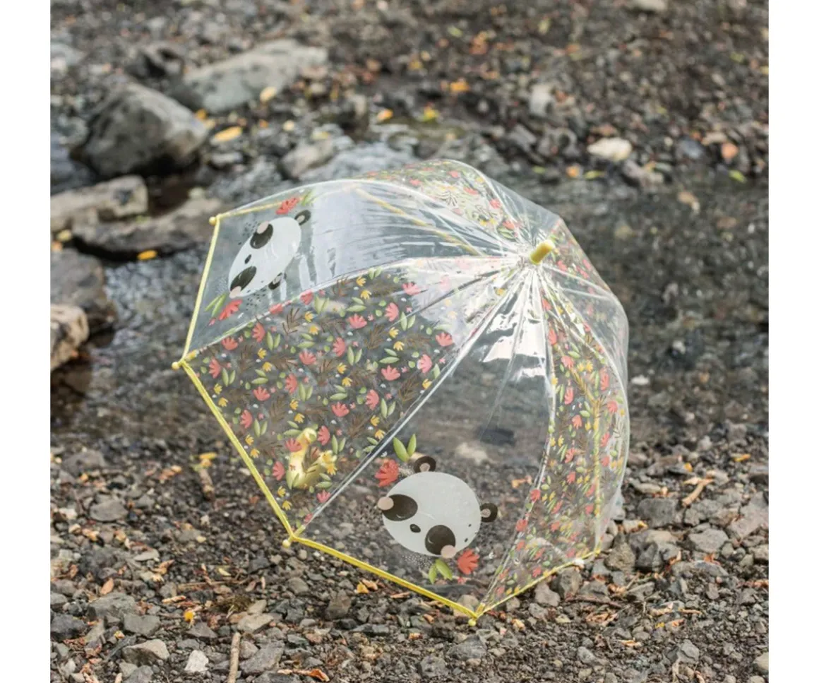 El paraguas infantil transparente Panda de Sassi es perfecto para que los peques salgan a jugar sin mojarse, manteniéndose secos y protegidos con estilo.