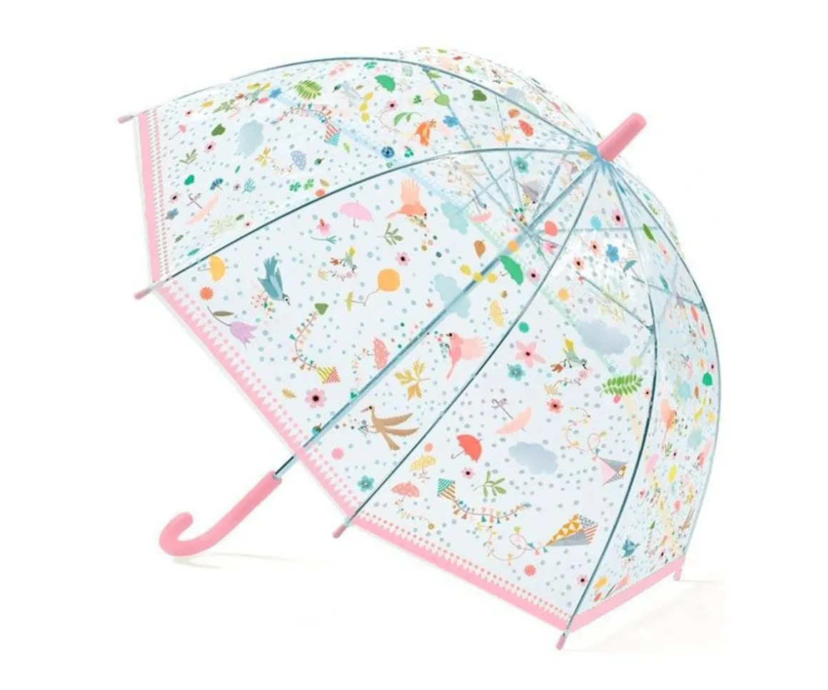 Bonito paraguas transparente con dulces ilustraciones.