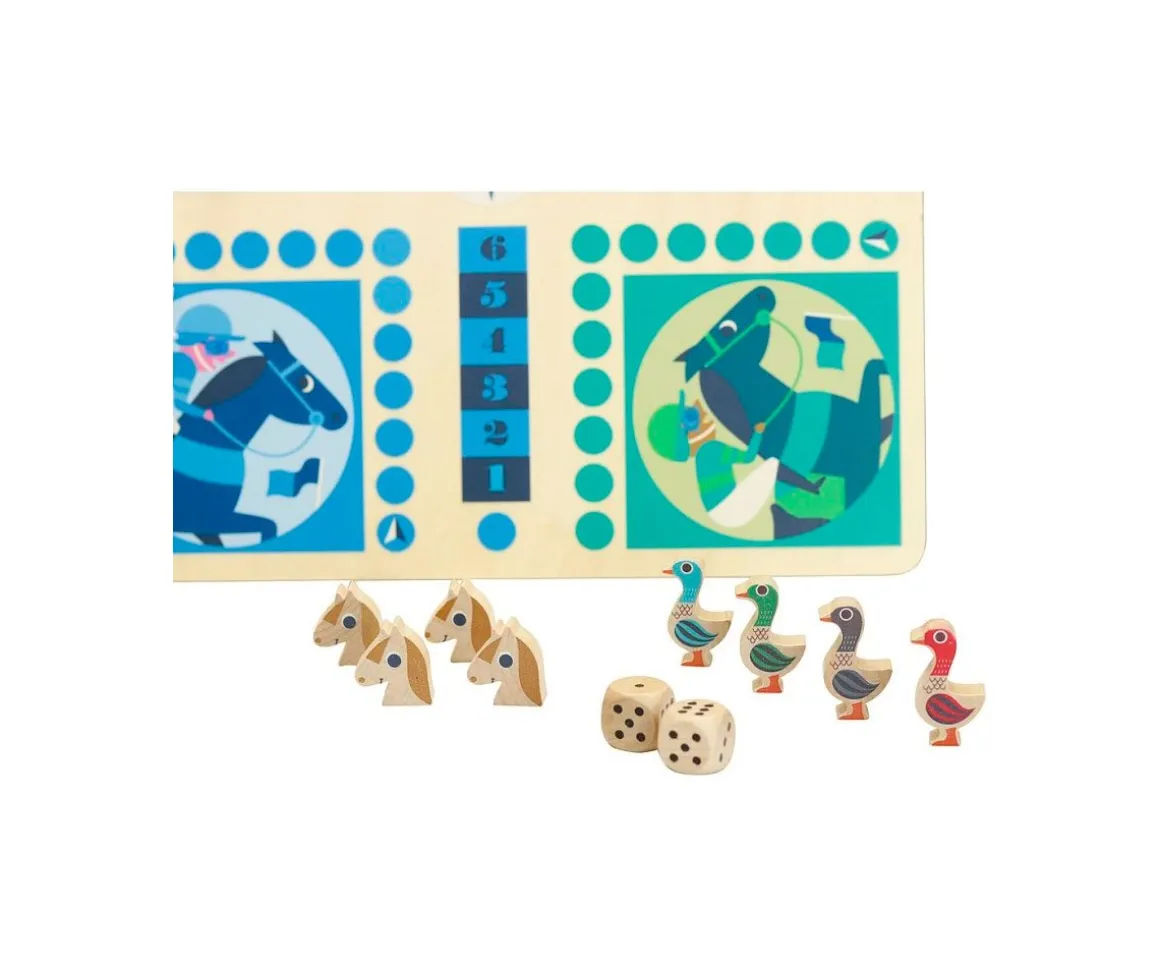 - Trae fichas en forma de oca par jugar al juego de la oca y en forma de caballo de 4 colores diferentes para jugar al parchís