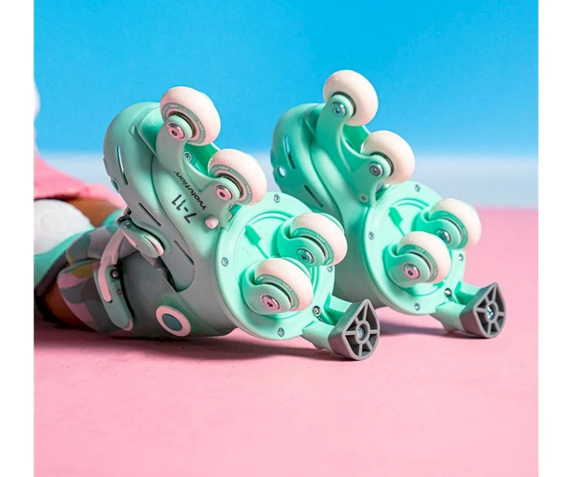 Los patines Yvolution Twista son los patines de ruedas para niños pequeños perfectos. Ajustable hasta en 4 tallas (de la 30 a la 34) con una simple pulsación, son fáciles de poner y descubrir las primeras sensaciones de deslizamiento. Las ruedas traseras modulares en línea o en paralelo evolucionan sin herramientas y ofrecen una estabilidad adaptada al progreso del niño.
