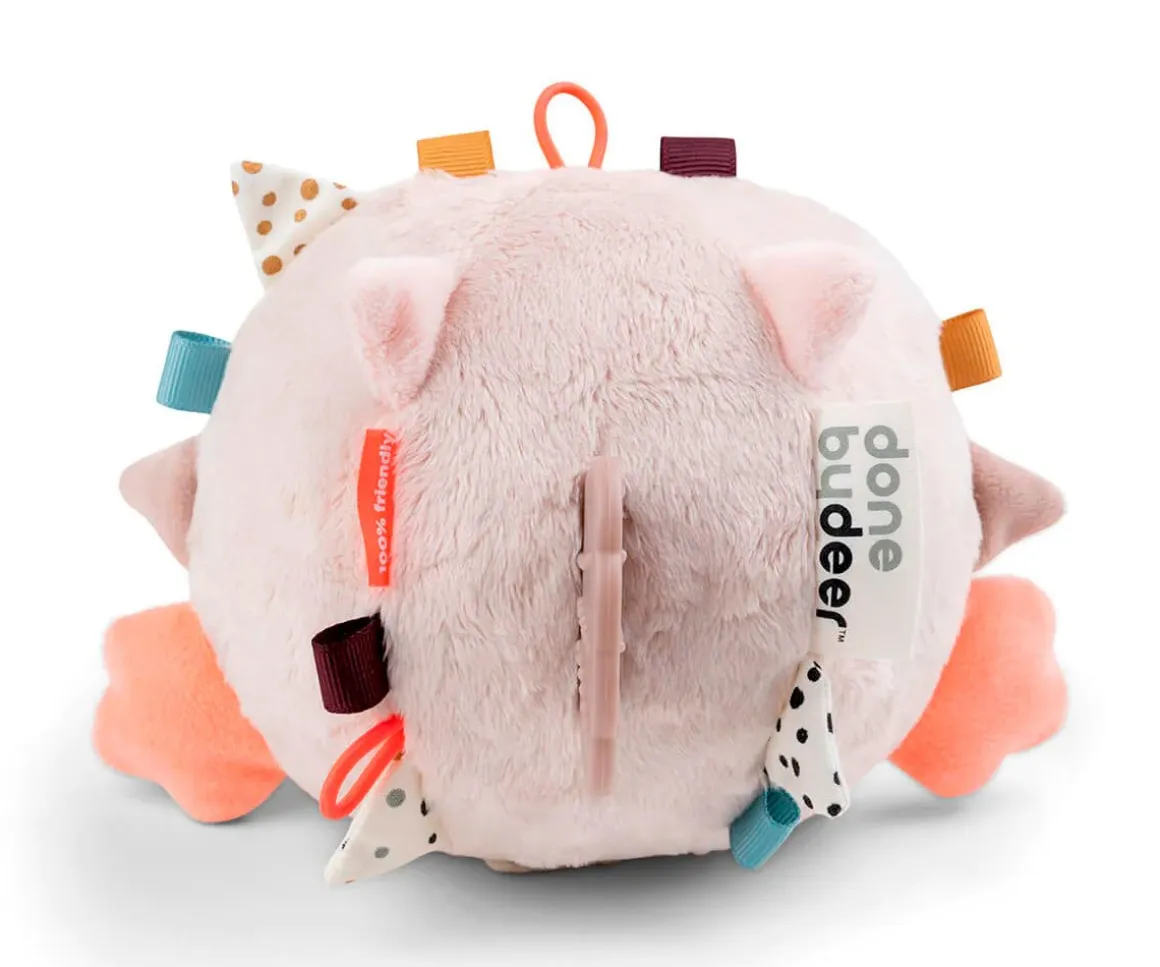 La forma redonda de Puffee es perfecta para rodar. Dale un empujón y hará un sonido intrigante, animando a los más pequeños a gatear tras él. El lindo mordedor de silicona con forma de aleta tiene diferentes texturas para estimular y calmar la picazón en las encías.