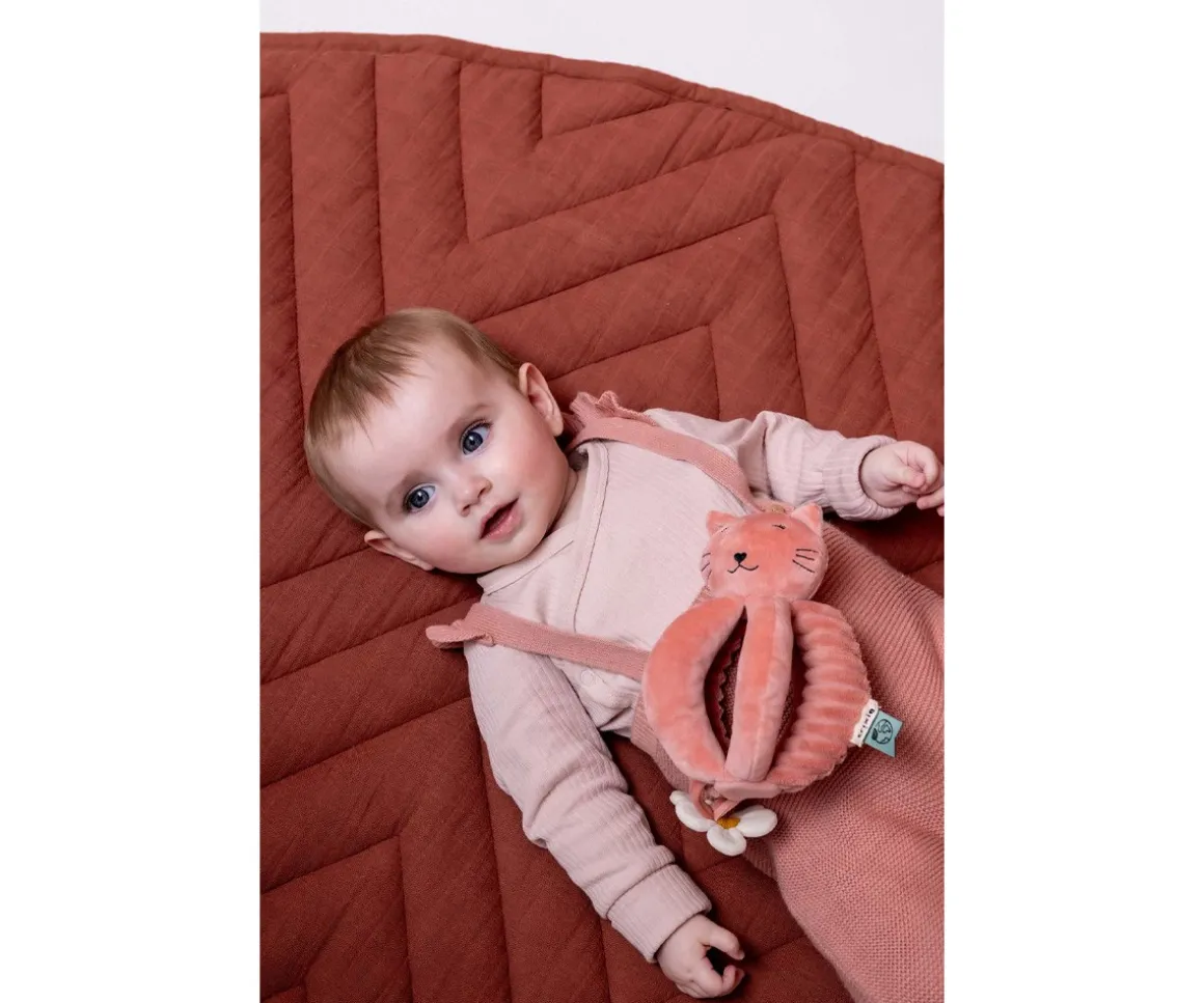 Un gatito hecho pelota blandita y esponjosa ideal para bebés a partir de 3 meses. Una forma muy original de estimular el agarre y los reflejos de tu peque ya que podrán cogerla, sacudirla, lanzarla, explorarla y mucho más.