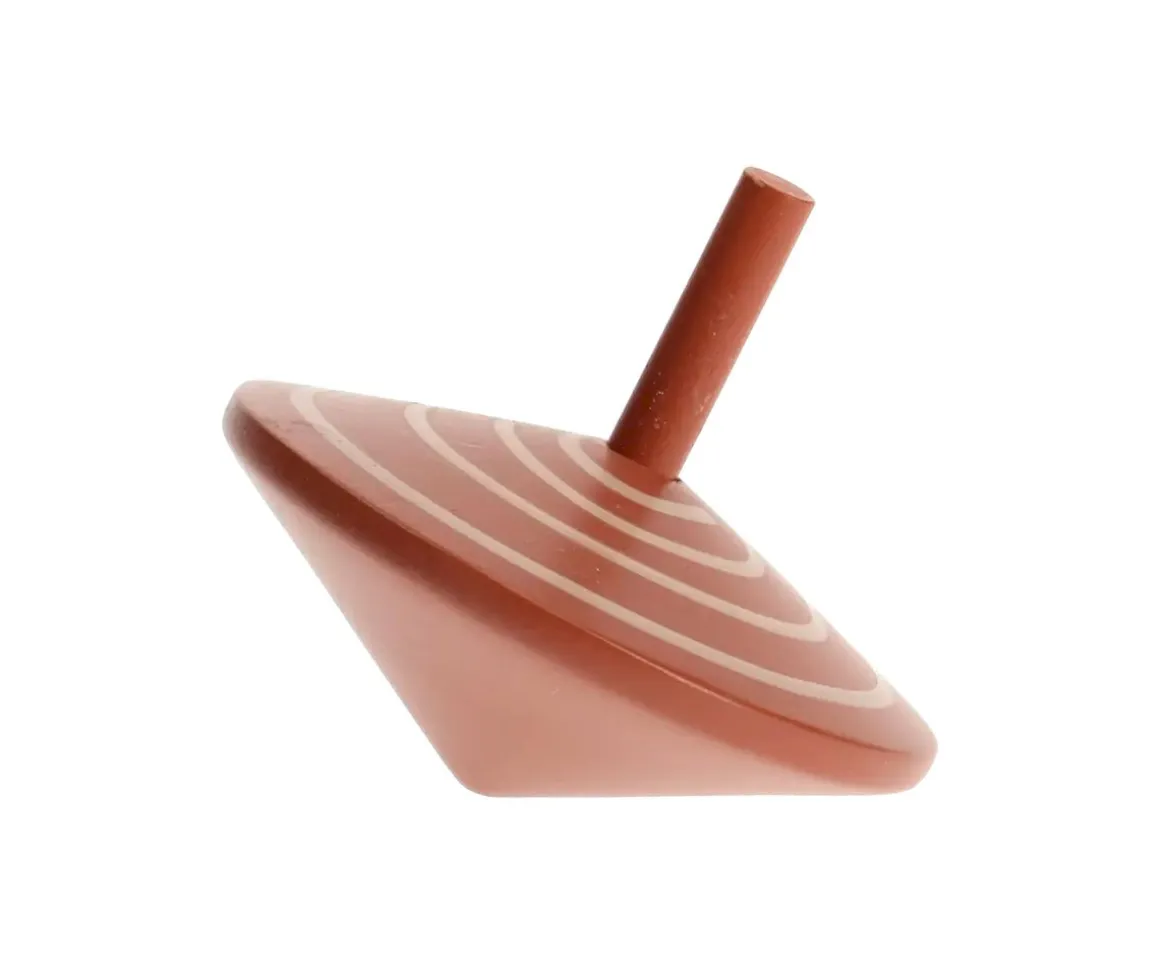 Peonza de madera de giro manual para hacer pequeñas competiciones con tus amigos. La bonita espiral que tiene dibujada crea un efecto óptico muy original.