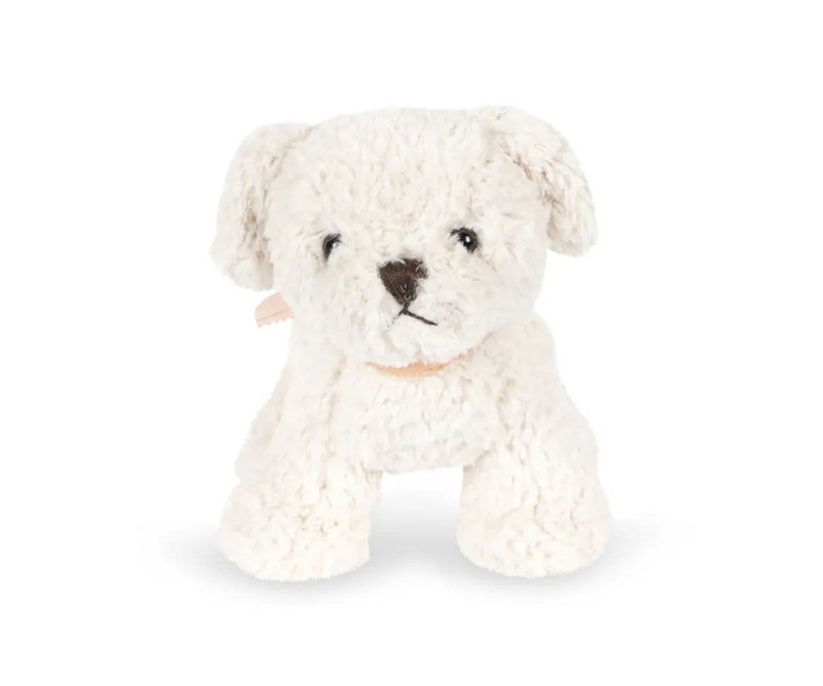 El perrito Madeleine viene en una bonita caja que incluye también su camita y un hueso blandito para poder jugar. Con su gran lazo en el cuello, este perrito es el compañero perfecto para que los más pequeños pasen horas de diversión y ternura.