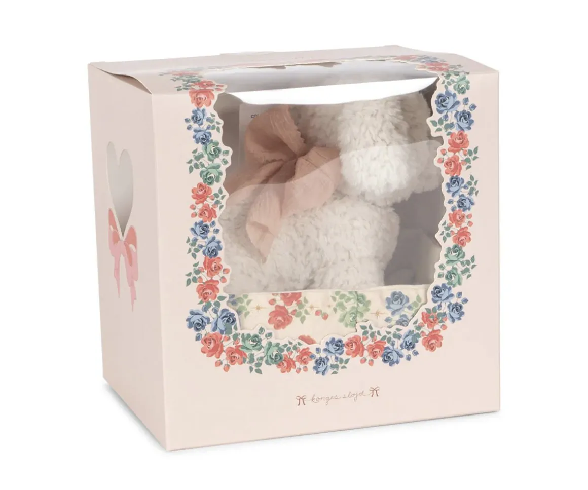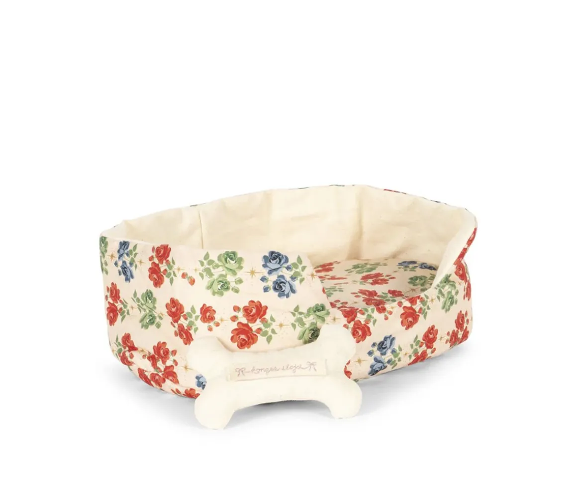 Este adorable perrito de peluche se llama Madeleine y pertenece a la colección floral Fiola de Konges Slojd.