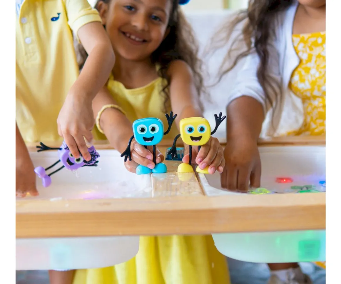 Pal Blair es un personaje azul muy divertido que viene acompañado de dos cubos iluminados reutilizables. Los brazos de Pal son flexibles, y puedes insertar los cubos en la parte posterior de Pal, y ver cómo se ilumina en el agua.