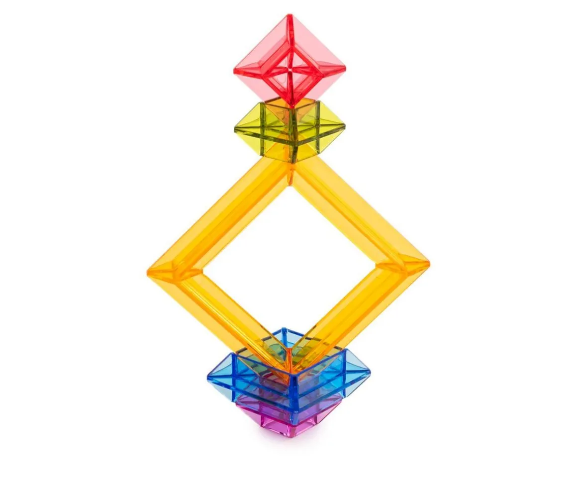El set de piezas translúcidas Miniland que los peques podrán apilar y encajar para realizar construcciones multicolor.