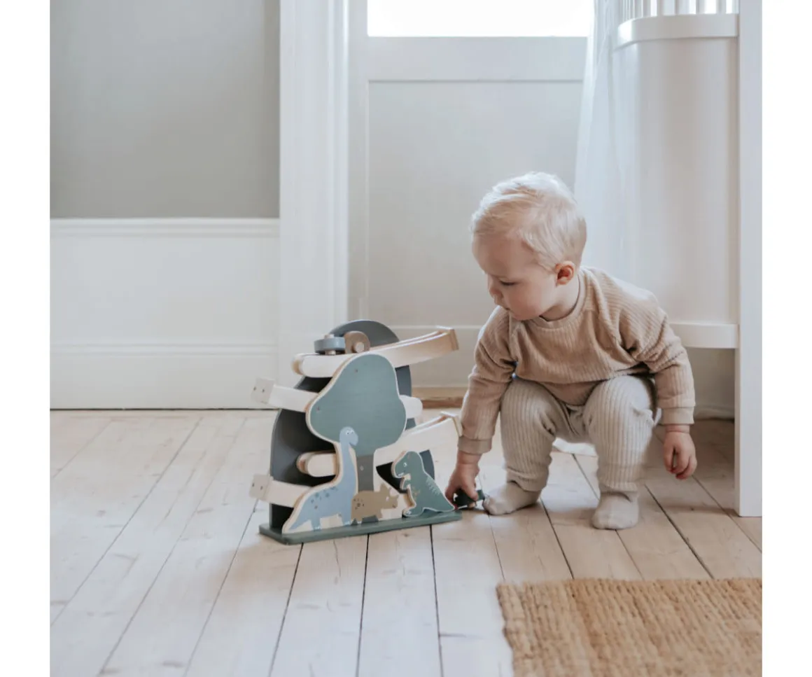 ¡La familia de dinosaurios de JaBaDaBaDo sigue creciendo! La clásica pista de coches de la marca se reinventa con un encantador toque prehistórico, dando lugar a la divertida Pista de Ruedas Dinosaurios, perfecta para los pequeños amantes de los dinos y de las carreras.