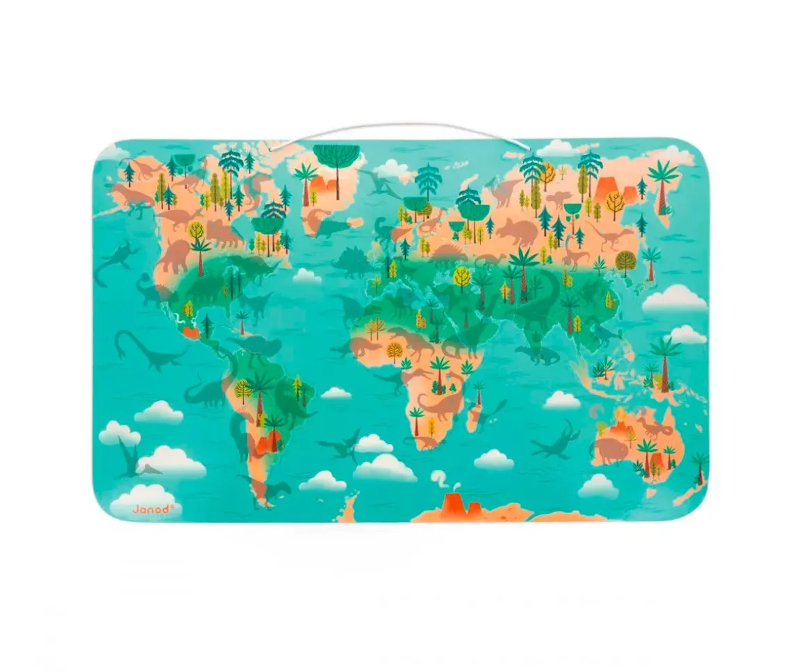 Deberás colocar los 50 imanes de dinosaurios en su lugar en el mapa magnético. Es un mapamundi genial para los amantes del Jurásico. Se puede colgar en la habitación para decorarla e incluye un póster para encontrar el nombre de las especies y profundizar en la investigación.
