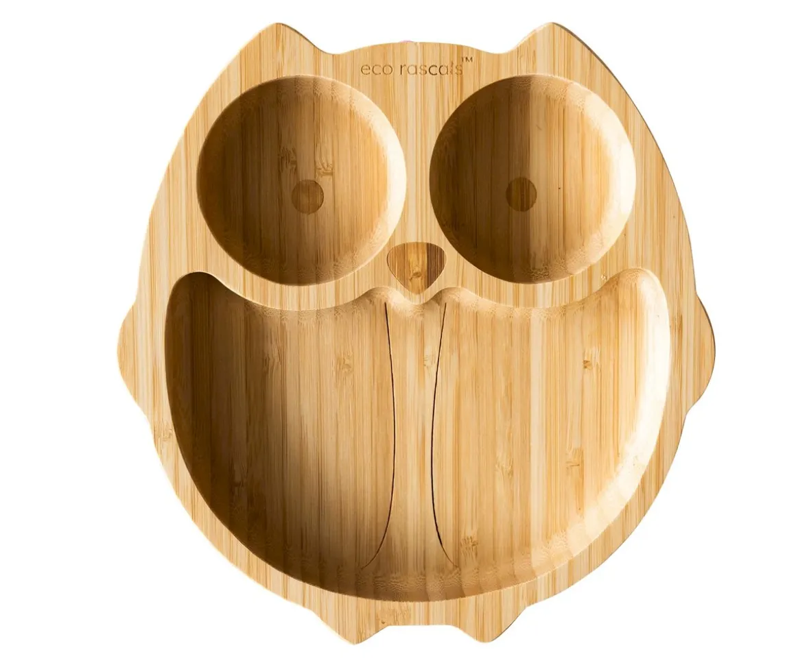 El Plato con ventosa de bambú Búho Rosa de la marca Eco Rascals lleva una ventosa de silicona desmontable para asegurar que se agarre firmemente a la trona o la mesa y así evitar que los niños lo vuelquen. El plato se divide en tres secciones para separar la comida