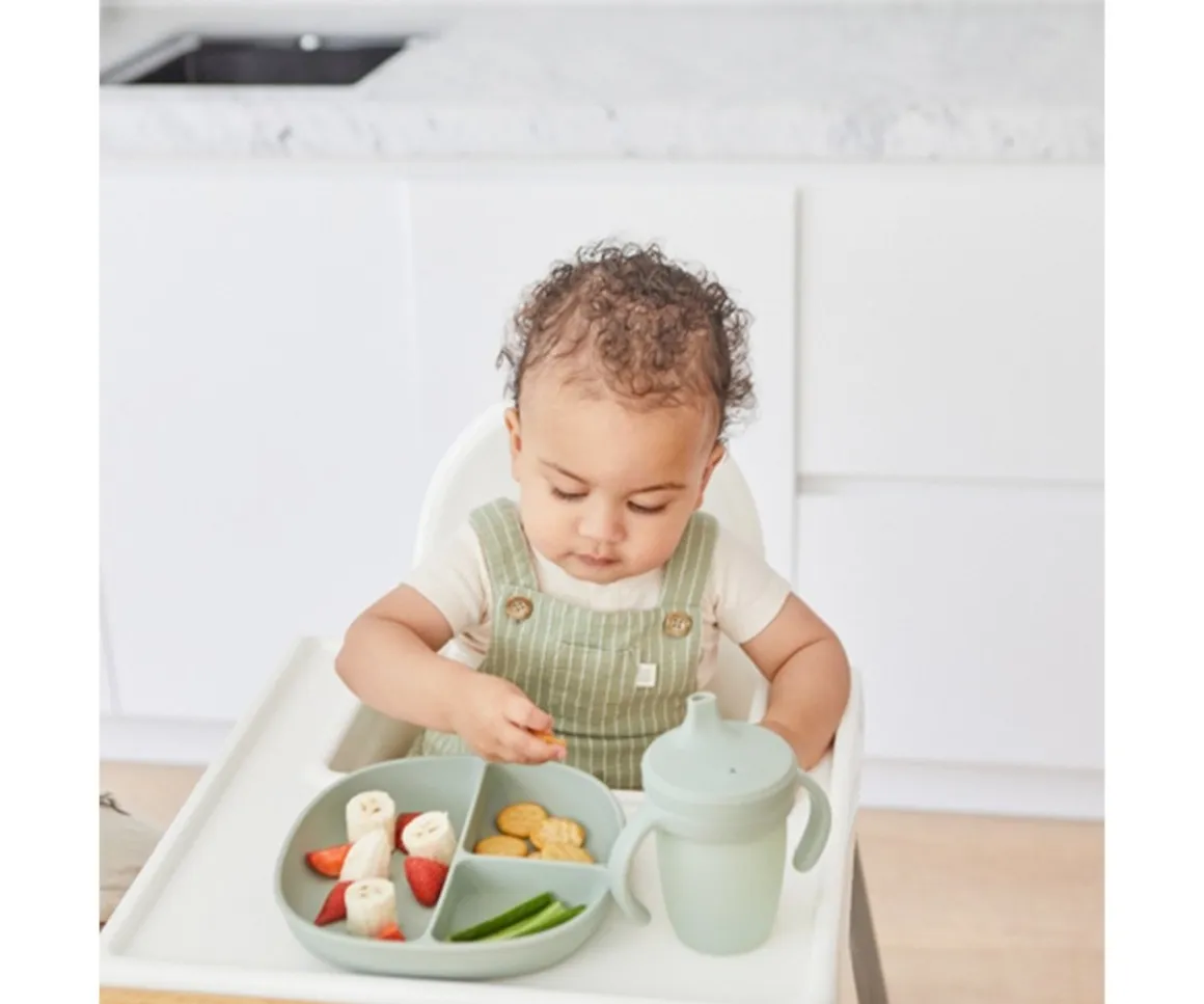Descubre los platos de silicona con tapa y ventosa de B.Box súper completos e ideales para Baby-led Weaning ya que sus lados curvos permiten que tu peque los pueda coger fácilmente su comida sin manchar demasiado.