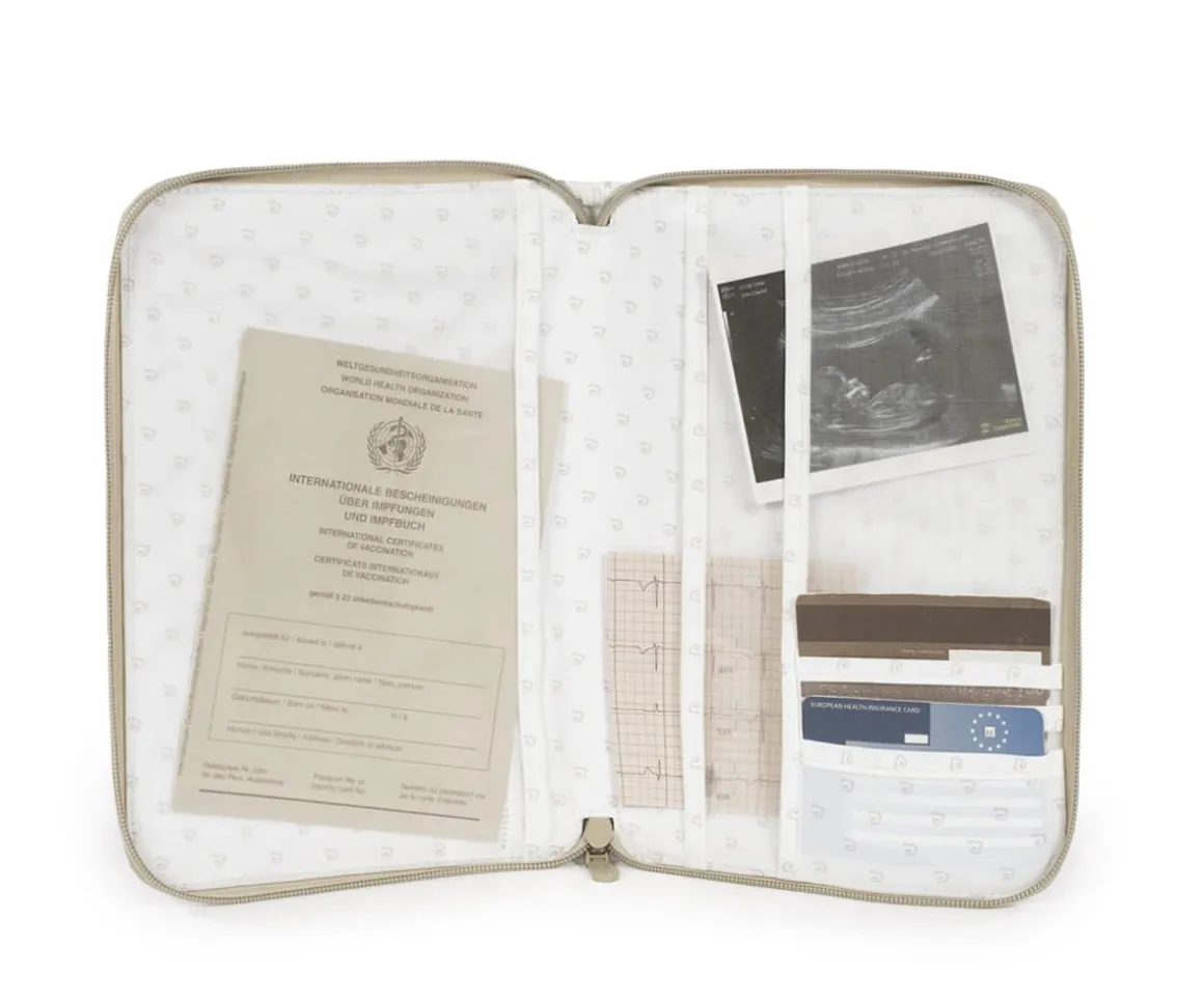 Este práctico portadocumentos es el compañero perfecto para mantener todos los papeles importantes de tu bebé organizados y protegidos. Hecho con ecopiel suave y resistente, cuenta con útiles bolsillos y un cierre de cremallera para garantizar que todo esté seguro.