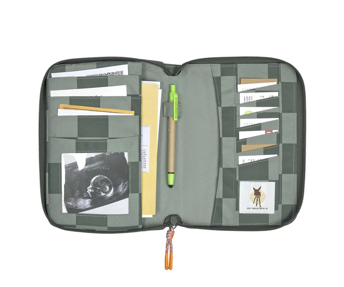 Práctico portadocumentos de Lässig con cierre de cremallera para tener todos los documentos, cartillas y tarjetas del bebé.