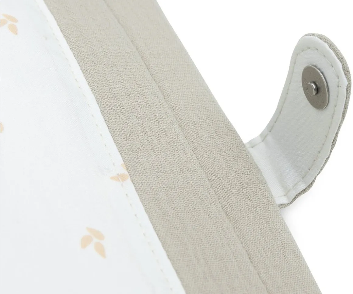 Este portadocumentos fabricado en suave muselina es ideal para llevar todos los documentos de tu peque, así como para cubrirsu agenda o convertirla en un elegante accesorio.