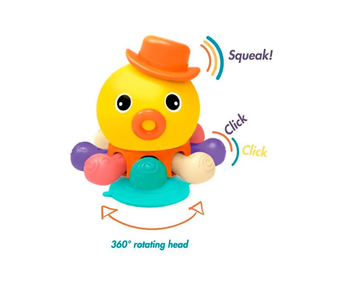 El incansable y colorido pulpo de Bo Jungle será el compañero de juegos estupendo para tu peque. Emite sonidos alocados, gira 360º y chasquea sus tentáculos, para fomentar mediante el juego y la diversión las habilidades motoras y el pensamiento activo de los peques.