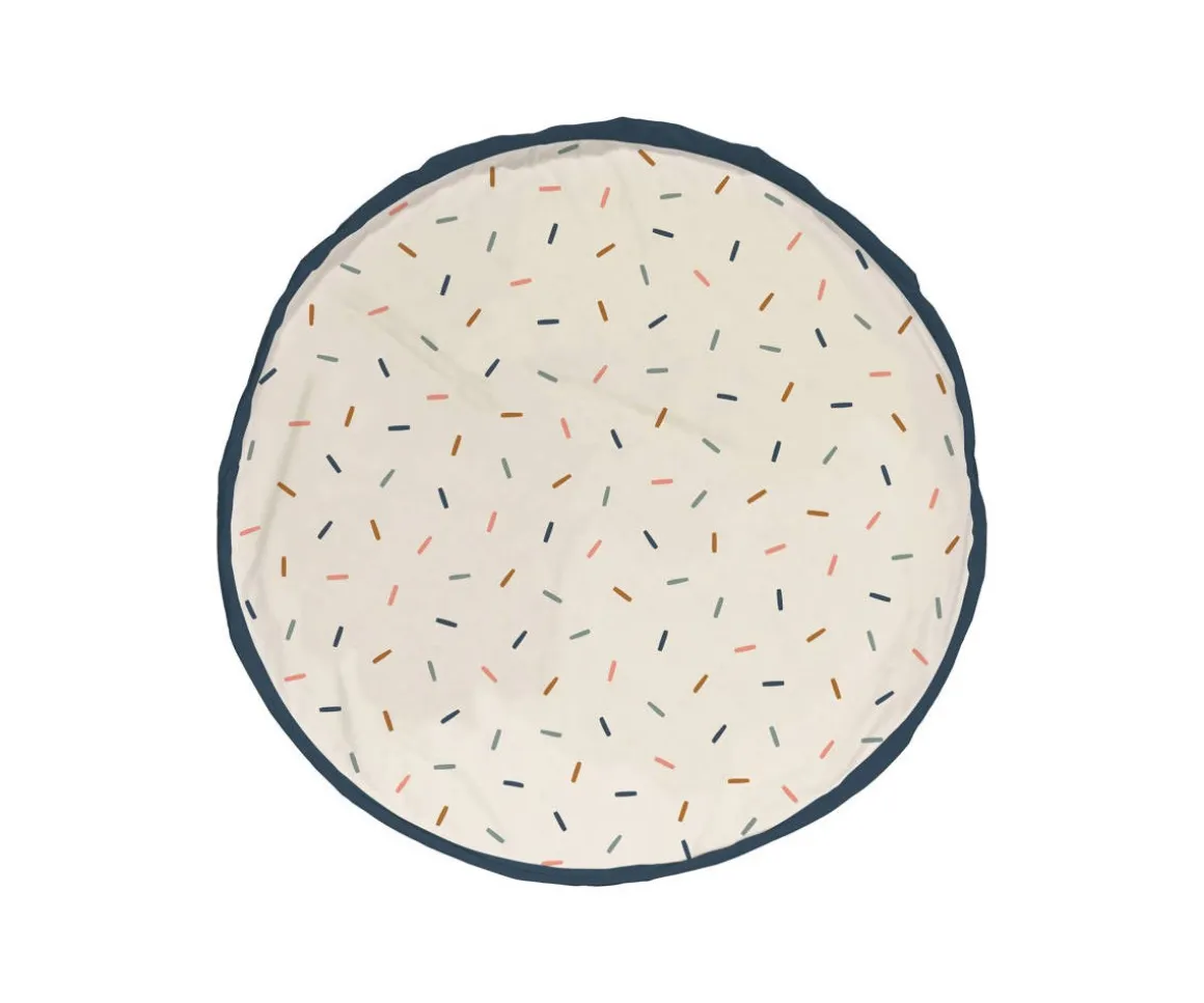 Este saco se desdobla y se convierte en una manta de juegos donde el niño puede jugar con todas sus juguetes, grandes y pequeños, y cuando llega la hora de acostarse, sólo hay que cerrarla y ya está todo recogido.